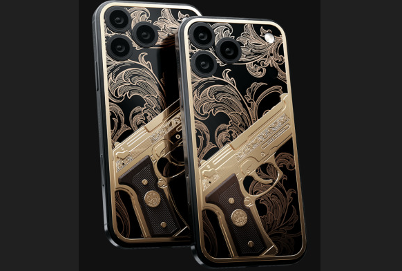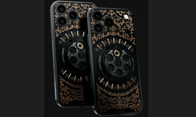 في مجموعة «Desperado» (التي تتضمن حافظات تحتوي على شفرات قابلة للإخفاء، و«قبضات مفصلية» معدنية، وطلقات رصاص مطلية بالذهب عيار 24 قيراط)، هناك نموذج يُدعى الروليت الروسية، وهو الهاتف الرائد في هذه السلسلة، وفقاً لما تقوله Caviar. في قلب هذا التصميم، يوجد أسطوانة دوارة حقيقية لمسدس تحتوي على رصاصة واحدة فقط. قد يبدو لك التصميم مبتذلاً بعض الشيء، لكن إليك ما تقوله Caviar عنه: