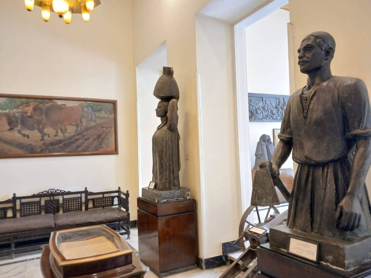 وتضيف: «كل قطعة في المتحف تحمل رؤية فنية مغايرة لعالم الزراعة والأرض»، ويمكن مشاهدة تمثال يعود للنحّات العالمي محمود مختار بعنوان «حاملة الماء» الذي يُصوّر فلاحة تحمل جرّة من الماء فوق رأسها، وتمثال من الجص يُصوّر نوبيّاً يحمل سلة من البلح، وهي تماثيل تُجاور مقتنيات أثرية لقصر الأميرة فاطمة إسماعيل، منها سجاد نادر لخريطة قديمة للمملكة العربية السعودية، من إنتاج «معهد السجاد بالمدينة المنورة».