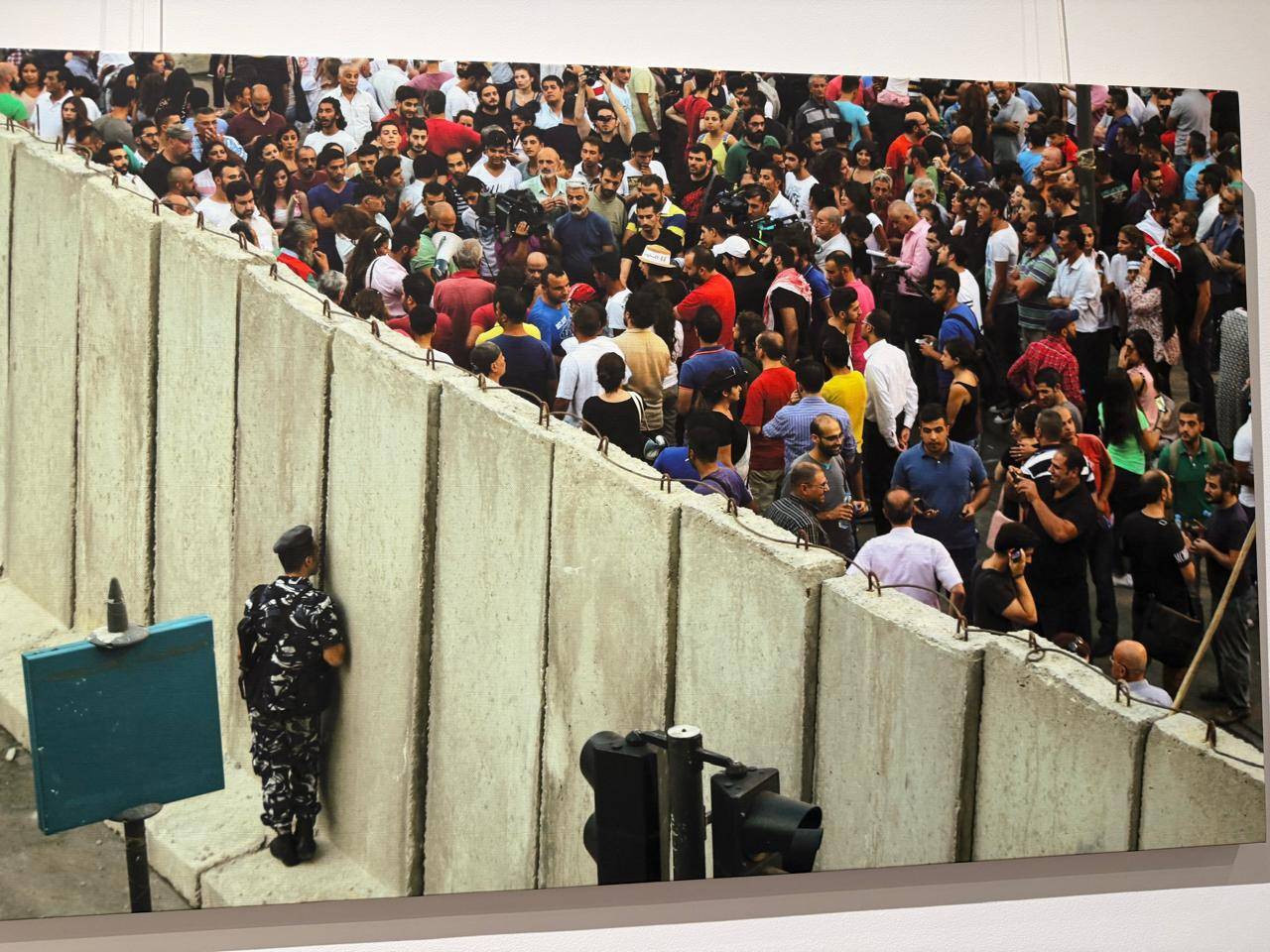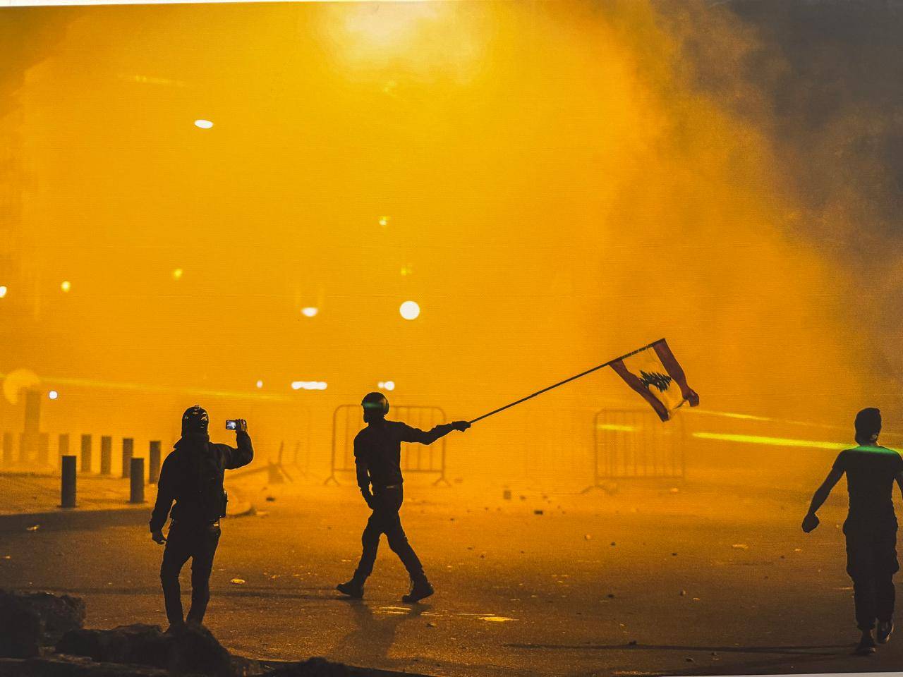 ويحضر حسين بيضون بصورة جندي يُراقب المتظاهرين من ثغرة ضيقة في جدار عازل خلال احتجاجات 2015 ضدّ تراكم النفايات. صورة تختصر المسافة بين دولة تحتمي بالأسوار وشعب يبحث عن هواء نظيف. في المقابل، يُقدّم ربيع ياسين صورة من ديسمبر (كانون الأول) 2020 لمواجهة عنيفة بين محتجّين وقوات الأمن، يصفها بأنها نقطة مفصلية للثورة، حين تَحوّل الحلم إلى صِدام مفتوح.