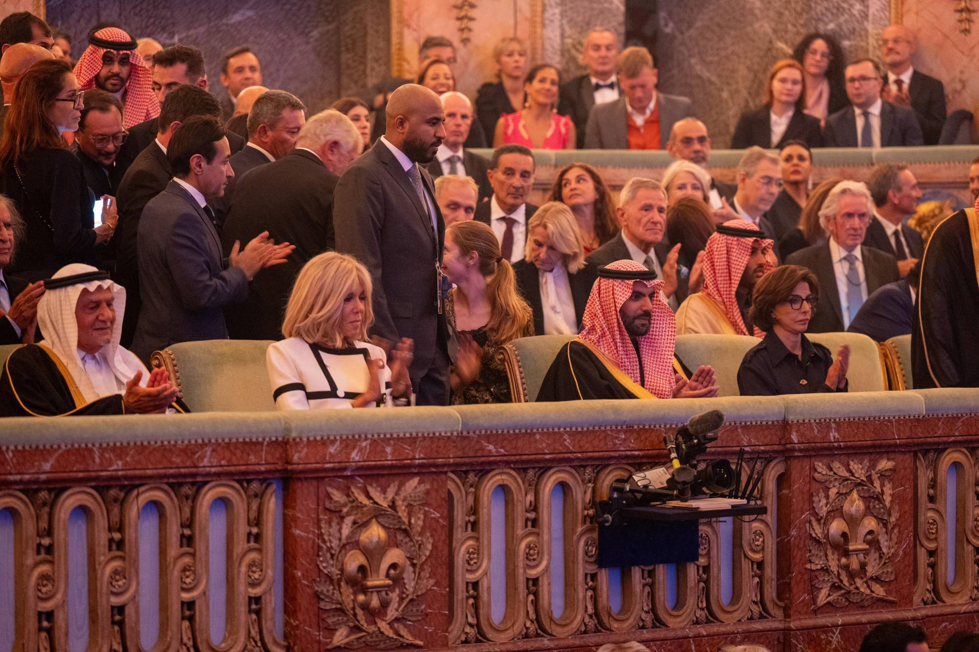 وأعرب الأمير بدر بن عبد الله بن فرحان، عن سعادته بحضور بريجيت ماكرون، زوجة الرئيس الفرنسي، ولقاء الوزيرة رشيدة داتي «في ليلة امتزجت فيها الفنون السعودية بالفرنسية»، مؤكداً عبر حسابه على منصة «إكس»: «شراكتنا الثقافية تمضي قدماً».