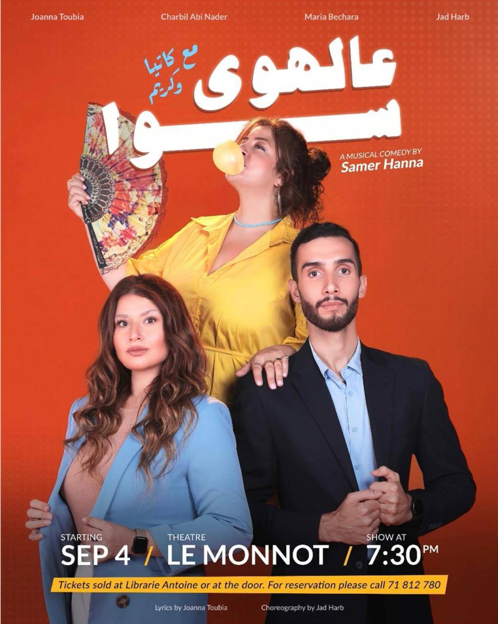 قوة المسرحية في أنها تُقارب الموضوع الثقيل بميزتَيْن: الكوميديا والأغنية. وكما في أعمال سامر حنا السابقة، تحضُر اللوحة الغنائية، فتُقال الكلمة بإيقاع وخطوات راقصة. هنا، يتجاوز دور جاد حرب مجرّد حَمْل اللافتات التي تطلُب من الجمهور التصفيق أو الضحك. صحيح أنّ مثل هذا التوجيه قد يبدو مُصطنعاً، لكنَّ دمجه في قالب إعلامي جعل حضوره «مُبرّراً»، وكأنّ الجمهور جزء من البرنامج نفسه. ومع ذلك، لم يقف دوره عند هذا الحدّ؛ إذ تولَّى تصميم الرقصات على وَقْع ألحان عرَّبت كلماتها جوانا طوبية وغنّتها مع شربل أبي نادر؛ مصمّم الديكور أيضاً. ورغم أنّ الكلمات بدت في بعض الأحيان خفيفة وعابرة، فإنّ الإطار الكوميدي العام للمسرحية، وشخصياتها، وطريقة معالجتها الموضوعات، منحت تلك الخفّة معنى وجعلتها مُضحكة وكاشفة. بهذا التوازن، ظلَّ المشاهد بين الكوميديا والإشكالية، بين الأغنية والمعنى، من دون أن يطغى جانب على آخر، أو تتضاءل قيمة موضوع على حساب سواه.