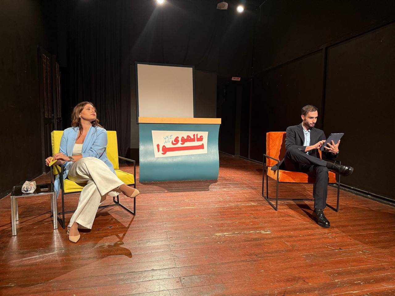 وليس مصادفةً أن يختار سامر حنا الإعلام قالباً لمسرحيته، ليصبّ فيه موضوعاً آخر لا يقلّ تعقيداً، هو العلاقات الزوجية. فالإعلام، مثل الزواج، يُواجه بدوره رخاوة المعايير، وصعوبة الإنتاج، وتبدُّل القيم الفكرية إلى مجرّد «وجهات نظر» مُتقلّبة. كأنّ حنا أراد أن يكتب مُرافعة غير مباشرة عن نفسه أيضاً؛ عن تجربته بكونه فناناً ومُنتِجاً يحاول الاستمرار وسط واقع إنتاجي قاسٍ يُحوّل البقاء إلى معركة يومية، ويصبح الحفاظ على القيمة ضرباً من الصمود. في هذا التداخُل بين الخاص والعام، بين أزمة الأزواج وأزمة الإعلام، يُلقي المخرج خطابه أمام مرايا متعدّدة: مرآة الزوجَيْن المتشظيَيْن، ومرآة الإعلام المتهاوي، ومرآته الشخصية بصفته فناناً يصرُّ على قول كلمته. وبينما يرفع صوته، يُقدّم معالجته بلغة مسرحية تمزج الضحك بالنقد، والأغنية بالدراما، ليُذكِّر بأننا جميعاً، بشكل أو بآخر، نعيش «عالهوى سوا». نبتسم أمام الجمهور، ونخفي خلف الكواليس انهيارات لا يراها أحد.
