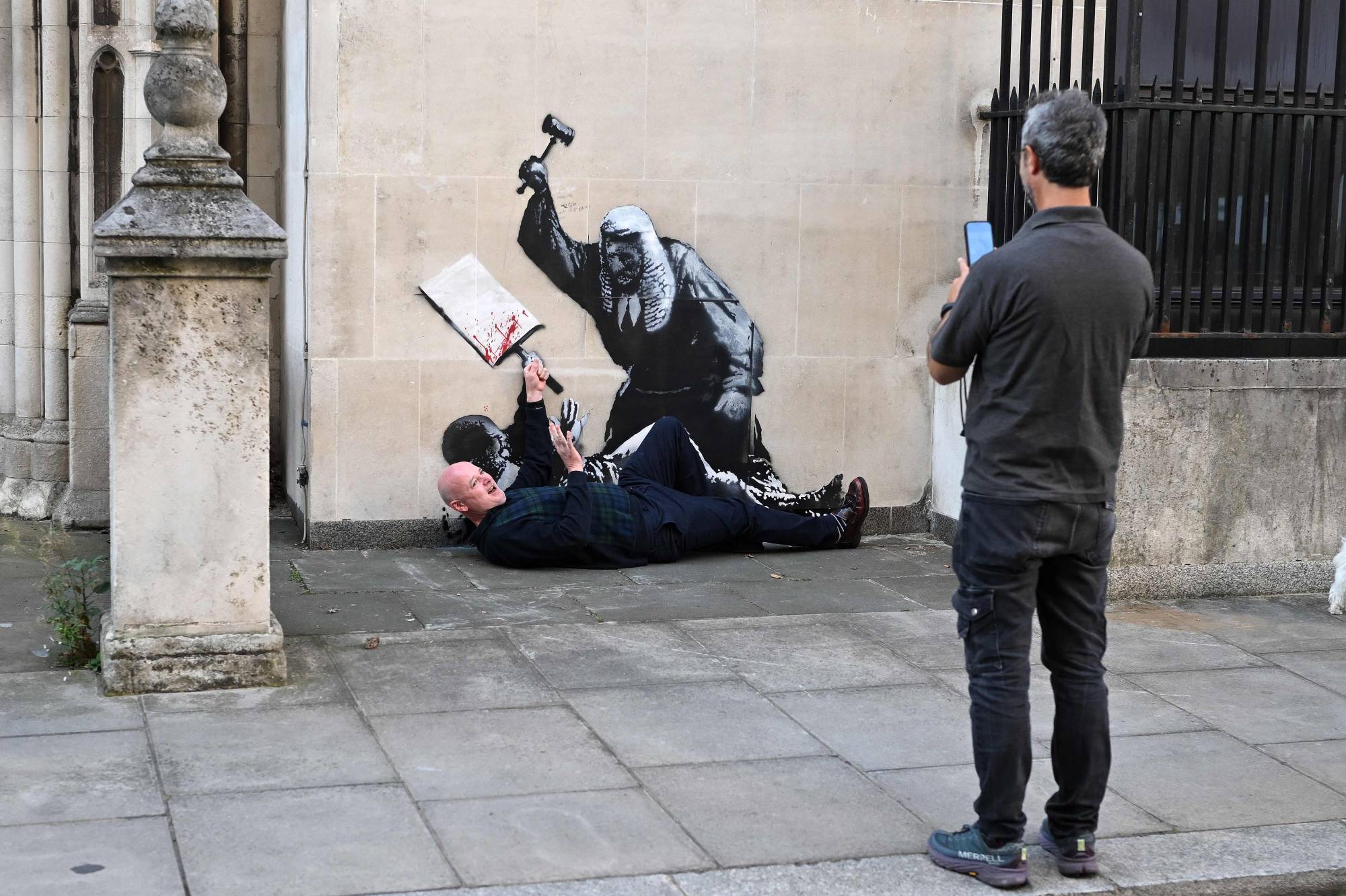 ظهرت جدارية جديدة لفنان الشارع بانكسي على جانب مبنى المحاكم الملكية للعدل في وسط لندن. وهي تُصوّر قاضياً يرتدي شعراً مستعاراً تقليدياً ورداءً أسود، بينما ينهال بالضرب على مُتظاهر ملقى على الأرض، والدماء تتناثر على اللافتة التي يحملها بيده.