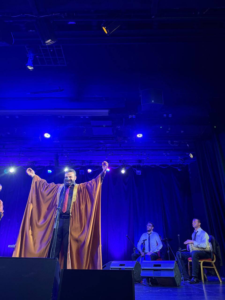 ما إن أطلّ المُغنّون بعباءاتهم، حتى بدا واضحاً أنهم هنا ليبعثوا ذاكرة حلب بكلّ ما تُمثّله. هيّأت الفرقة الموسيقية بقيادة المايسترو عبود غفرجي الجمهور لاستقبال «شيوخ الطرب»، فغنّوا ما رسَّخه صباح فخري وأجيال من الحلبيّة الذين صانوا هذا الفنّ عبر عقود. الأغنيات مألوفة، يُردّدها الناس في أمسيات السهر والمناسبات، وإنما وَقْعها على المسرح مختلف. غناءٌ يبقى مُتّقداً لا ينال منه التكرار.