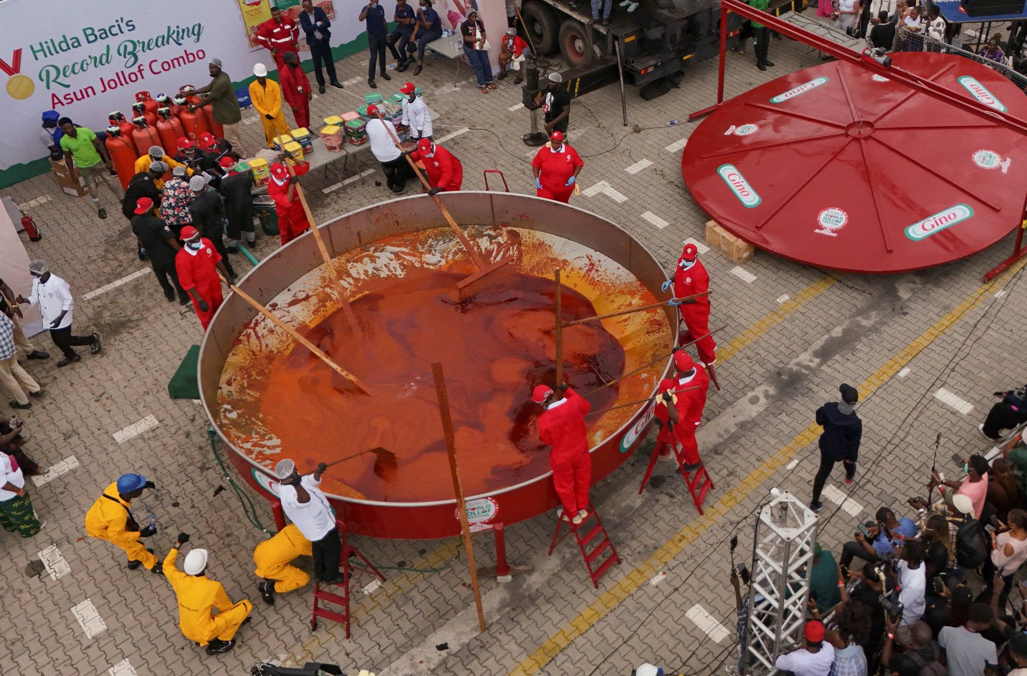 حطَّمت الطاهية النيجيرية هيلدا باتشي الرقم القياسي العالمي لأكبر قدر من طبق أرز الغولوف يُطهى على الإطلاق، وذلك في مدينة لاغوس الأسبوع الماضي. وأكدت موسوعة «غينيس» للأرقام القياسية هذا الإنجاز عبر وسائل التواصل الاجتماعي، مشيرةً إلى أنّ خلطة باتشي من الطبق الشهير في غرب أفريقيا بلغ وزنها المذهل 8780 كيلوغراماً.