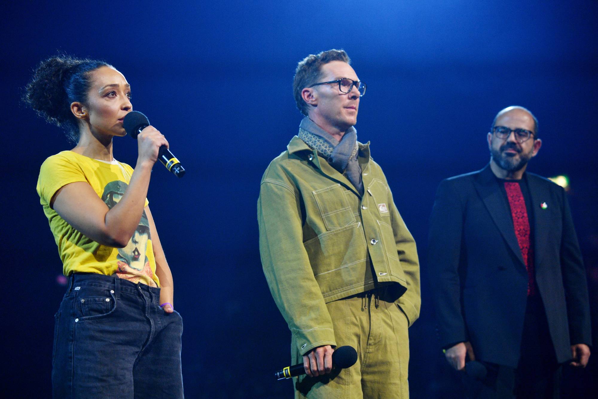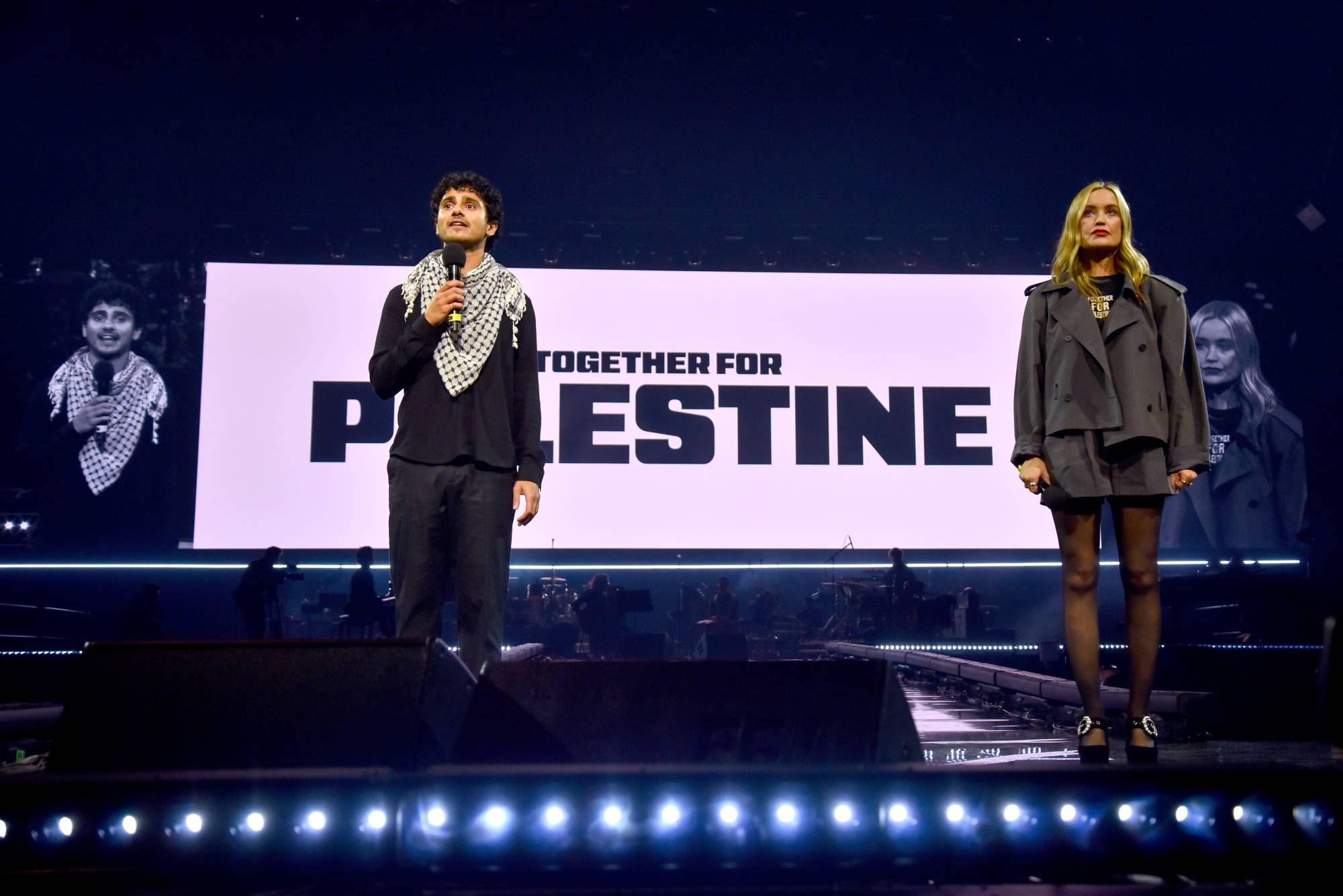 بين الفقرات الفنية، ألقى بعض المشاهير، كالممثلة جميلة جميل والصحافي الوثائقي المعروف بأعماله مع هيئة الإذاعة البريطانية (BBC) لوي ثيرو، خطابات مؤثرة تذكّر الحضور بمسؤوليتهم تجاه ما يحصل. «لنستعيد حقنا بأن نحلم، فالاستسلام ليس بخيار»، قالت فرانشيسكا البانيزي، المقررة الخاصة للأمم المتحدة المعنية بحالة حقوق الإنسان في الأراضي الفلسطينية المحتلة، والتي تحولت في الفترة الأخيرة نجمةً بسبب مواقفها الإنسانية الصلبة دفاعاً عن أهل غزة. ولعل أكثر الفقرات استثنائية كانت مشاهدة الممثل البريطاني الشهير بينيدكت كامبرباتش، المعروف عالمياً بدوره في مسلسل «شرلوك هولمز»، وهو يلقي قصيدة محمود درويش الشهيرة «على هذه الأرض ما يستحق الحياة» مترجمة إلى الإنجليزية، ويستذكر بتأثر: «خَوْفُ الطُّغَاةِ مِنَ الأُغْنِيَاتْ».