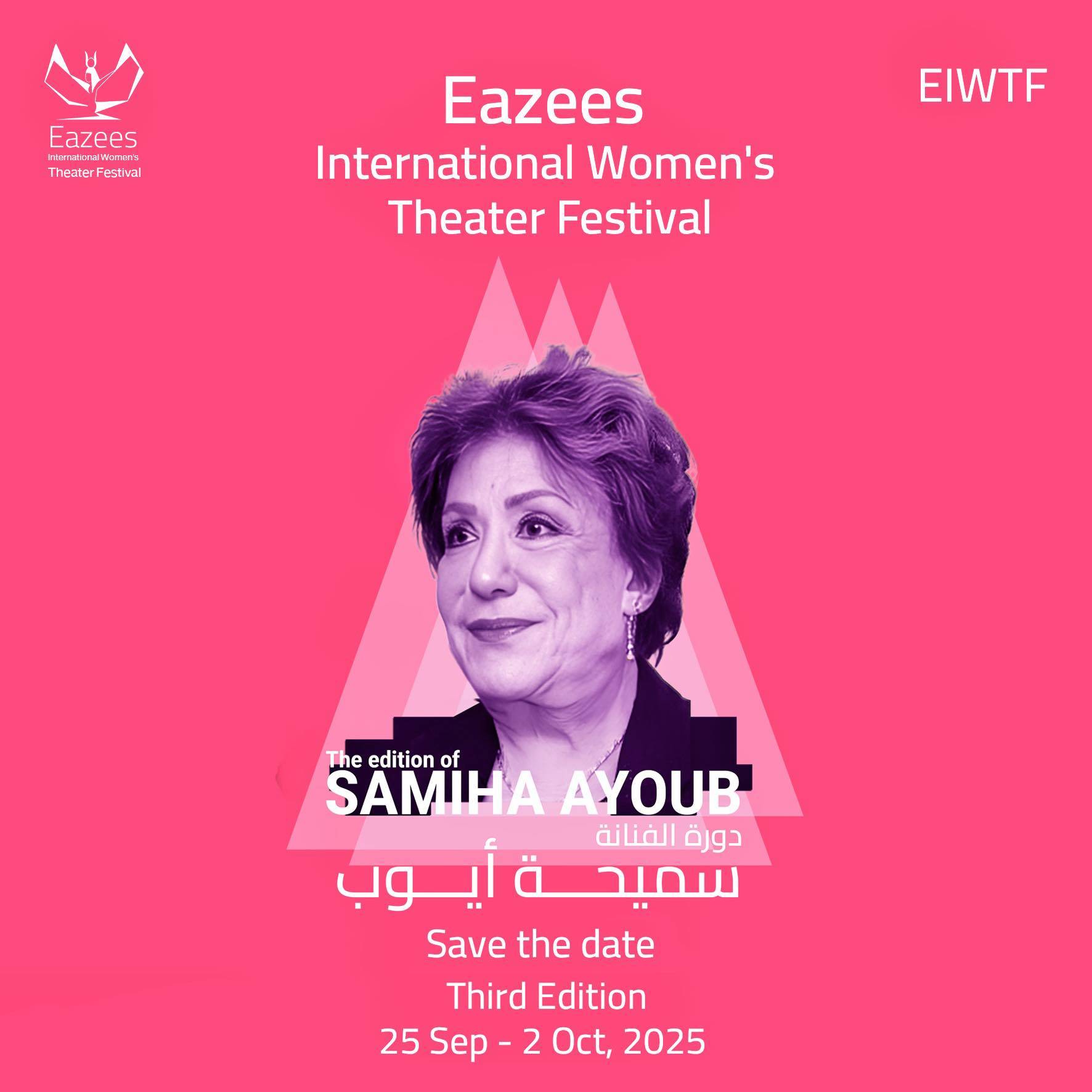 تستعد إدارة مهرجان «إيزيس الدولي لمسرح المرأة» لإطلاق الدورة الثالثة التي تحمل اسم الفنانة الراحلة سميحة أيوب «سيدة المسرح العربي» في القاهرة خلال الفترة من 25 سبتمبر (أيلول) وحتى 2 أكتوبر (تشرين الأول)، وتتضمن 15 عرضاً مسرحياً من 6 دول بجانب العديد من الفعاليات.