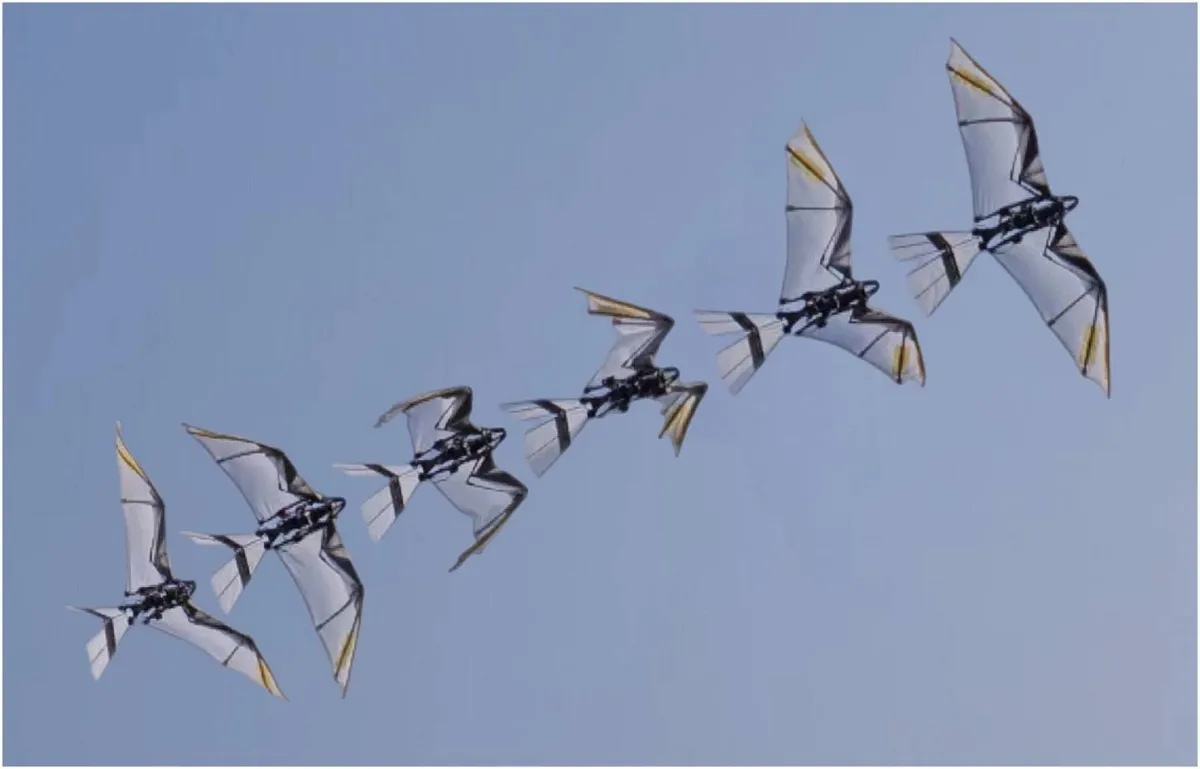 واعتمدت غالبية الروبوتات الطائرة المستوحاة من الكائنات الحية في السابق على حركة أجنحة أحادية النطاق الحر (DOF) تشبه أسلوب الطنين المتناظر لدى الحشرات أو الطيور الطنانة، في حين أن الطيور الكبيرة والخفافيش تستخدم 3 نطاقات للحركة هي: الرفرفة، والمسح، والطي. ولتطبيق هذه الحركات المعقدة، طوّر الباحثون آليات جديدة تتيح دمج الحركات الثلاث معاً في ضربة جناح واحدة.