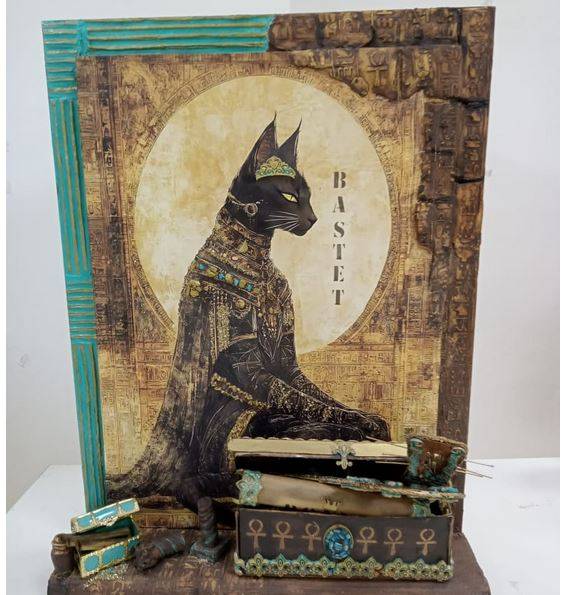 «قدم بعض المشاركين أعمالاً على ورق البردي، تناولت، بشكل أو بآخر، صورة مصر الأم البهية التي تضم أولادها بين البحر والنيل، وهاتان التيمتان كانتا محور كثير من الأعمال في المعرض. كما شارك بعض الفنانين بأعمال (ديجيتال آرت) احتفت بملوك وملكات الفراعنة، إلى جانب مشاركة نحو 10 من الأساتذة والطلاب في كلية الفنون والتصميم بالجامعة المصرية الصينية، في إشارة إلى التنوع الكبير بين الأجيال المشاركة»، وفقاً لقومسير المعرض.
