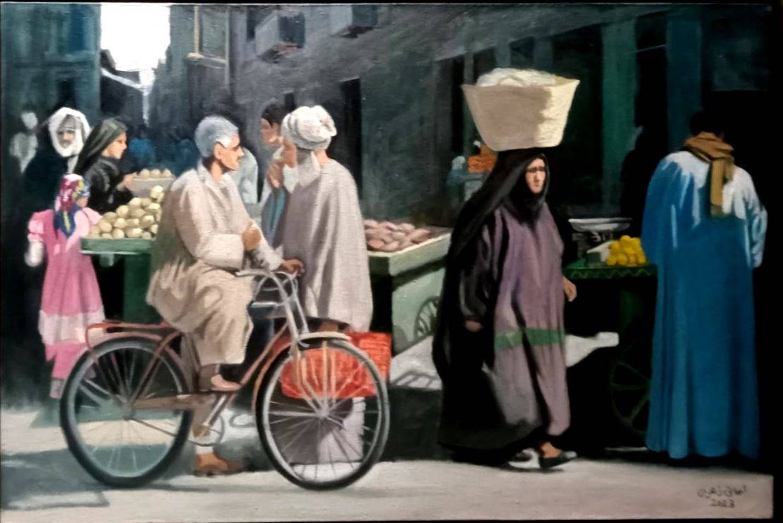 تقول أماني زهران لـ«الشرق الأوسط»: «يستعيد المعرض التراث المصري بمناسبة اقتراب الاحتفال بانتصارات أكتوبر (تشرين الأول) 1973، وقد افتُتح بلوحة للفنان الصيني مين هاي شانغ، مدرس الخطوط العربية في مصر، الذي رسم بعض المعالم المصرية الشهيرة مثل نهر النيل والأهرامات، مستخدماً الأحبار السوداء والملونة».