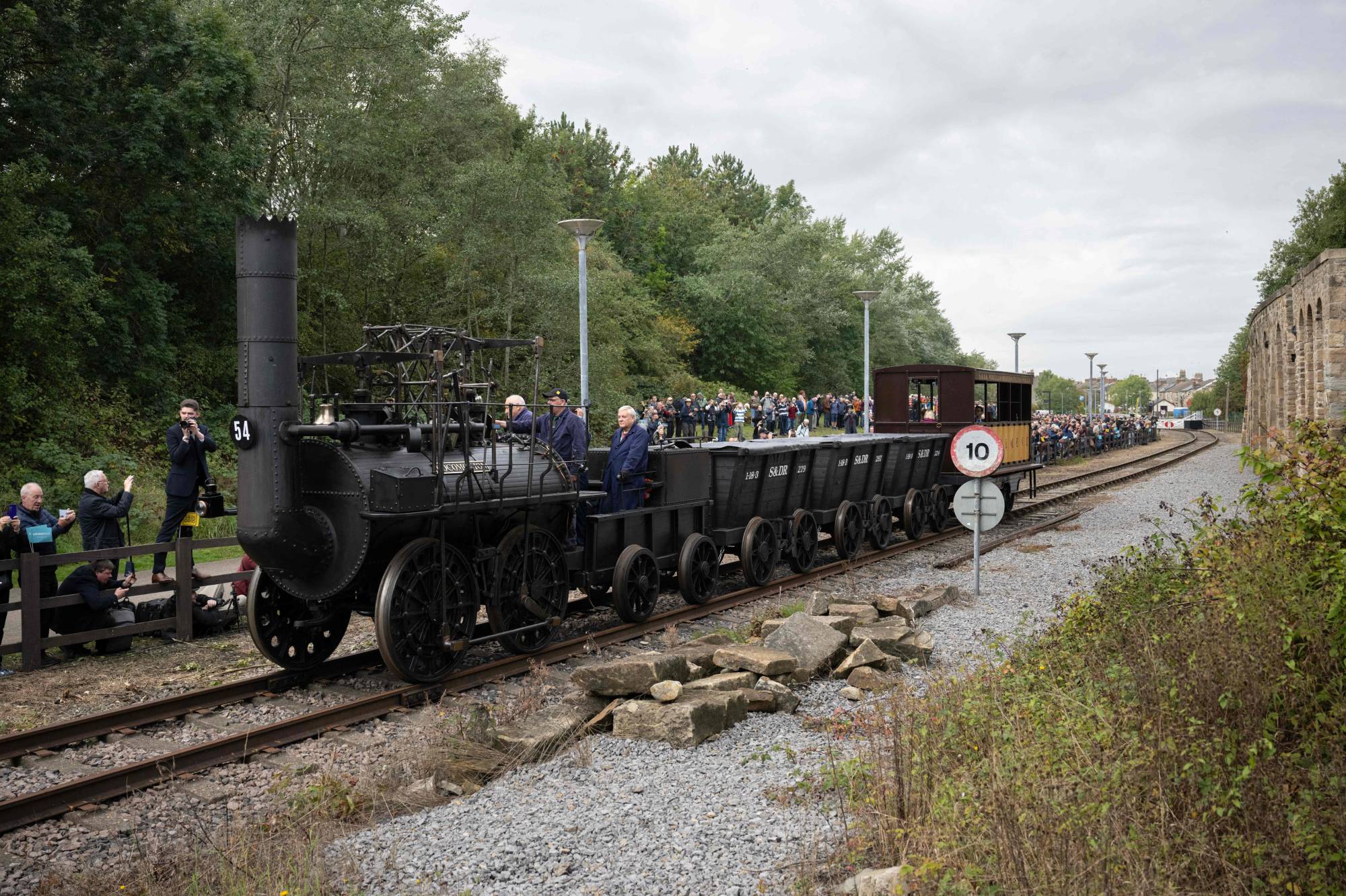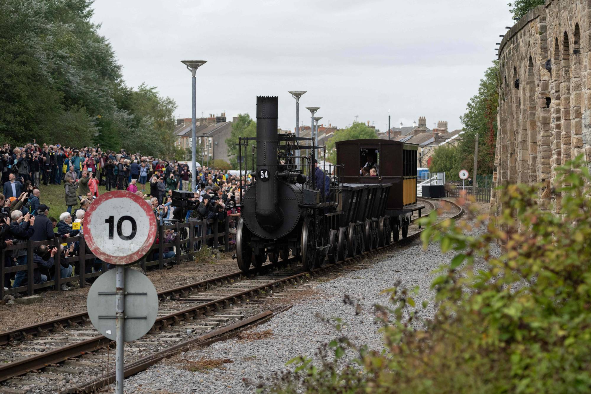 والأنظار على مشهد اصطفاف الآلاف على طول الخطّ لمُشاهدة نسخة مُرمَّمة من «لوكو موشن رقم 1» تعيد تمثيل الرحلة الأصلية بمناسبة مرور 200 عام، وذلك على مقاطع من خط ستوكتون ودارلنغتون. الرحلة التي انطلقت، الجمعة، تستمر طوال عطلة نهاية الأسبوع. وكان الأمير إدوارد، أصغر أشقاء الملك تشارلز الثالث، من بين الركاب على إحدى العربات، الجمعة؛ إذ سحبته القاطرة المقلَّدة في رحلتها القصيرة إلى شيلدون.