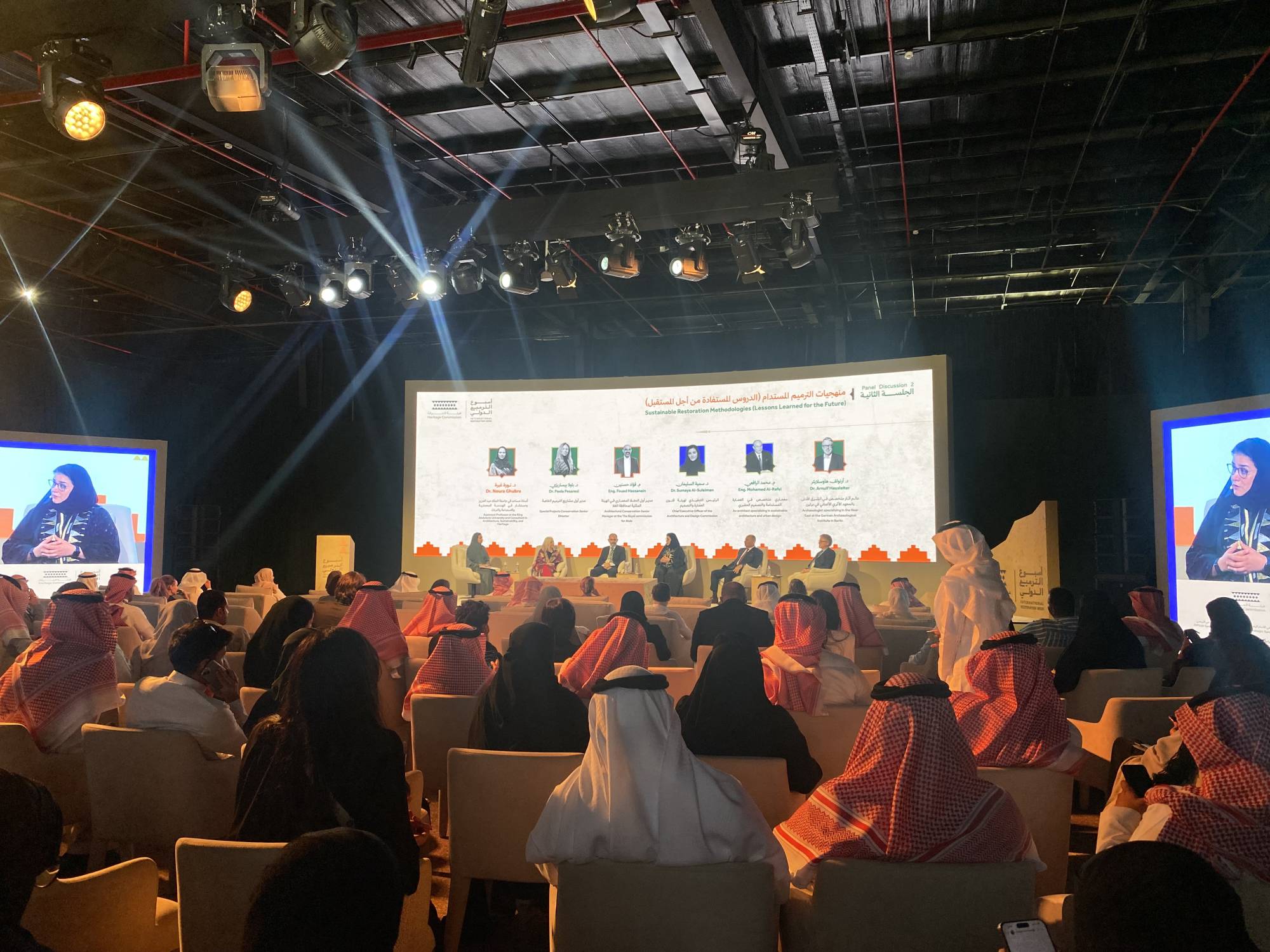 وشهد يومه الأول، جلسات حوارية، تناولت عدداً من المحاور والموضوعات المتعلقة بتحديات قطاع ترميم التراث وآفاقه، وتناول ضيوف الجلسات، موضوعات الجهود الدولية في معالم وأصول التراث العمراني ومنهجيات الترميم المستدام، والحلول التقنية المبتكرة في الترميم، ودعا المشاركون إلى ضرورة اتخاذ إجراءات عملية وبشكل فعال لتسريع وتيرة التنمية للقطاع التراثي.