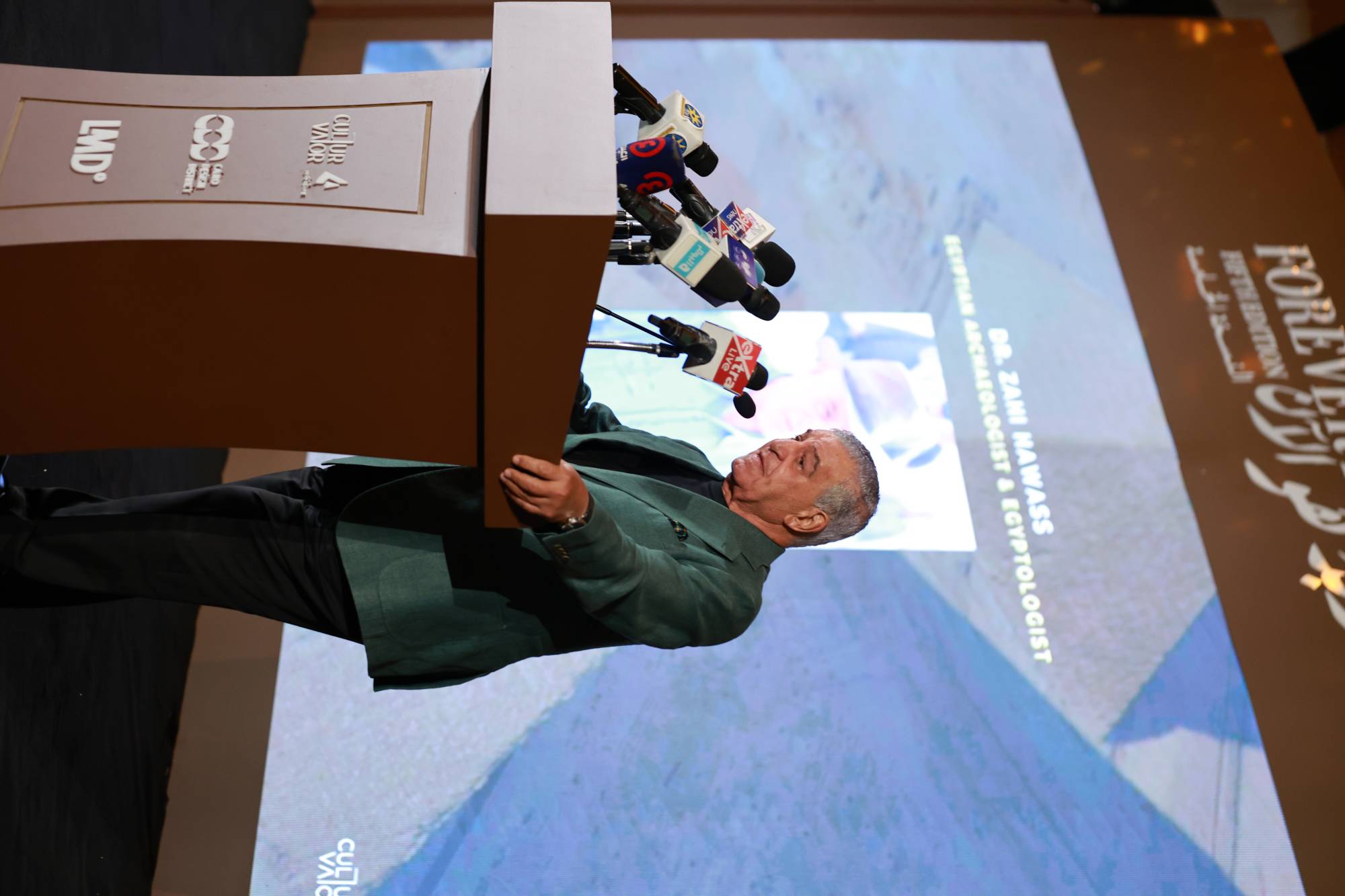 من جانبه، عدَّ عالم الآثار والمصريات البارز الدكتور زاهي حواس معرض «الأبد هو الآن» بأنه «مبادرة راقية ومدهشة لجمع فناني العالم في مكان واحد على أرض مصر»، موضحاً أن «الفعاليات الثقافية والفنية التي تُقام في سفح الهرم تسعده أكثر من حفلات الزفاف التي تُقام في تلك البقعة التي تُعد الأكثر سحراً وجمالاً، حتى لو كانت تلك الحفلات تخص مشاهير وأثرياء أصحاب سمعة دولية».