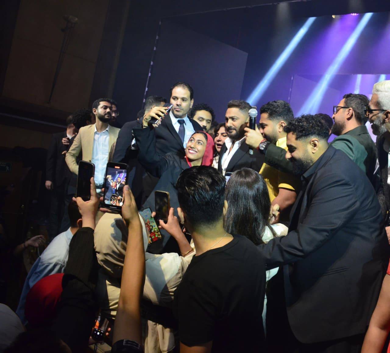 واحتفى المهرجان الذي يسعى إلى دعم التجارب الشبابية بنجوم مصريين بارزين في حفل افتتاحه عبر أغنية «حكاية مسرح» التي قدمها الفنان تامر حسني وسط الجمهور للمرة الأولى، بينما ظهرت على شاشة المسرح صور لفنانين لم يجتمعوا منذ سنوات، فيما حظيت لقطة ظهور الفنان عادل إمام وبجواره الفنانين عبد المنعم مدبولي وفؤاد المهندس بتصفيق حار من الحضور.