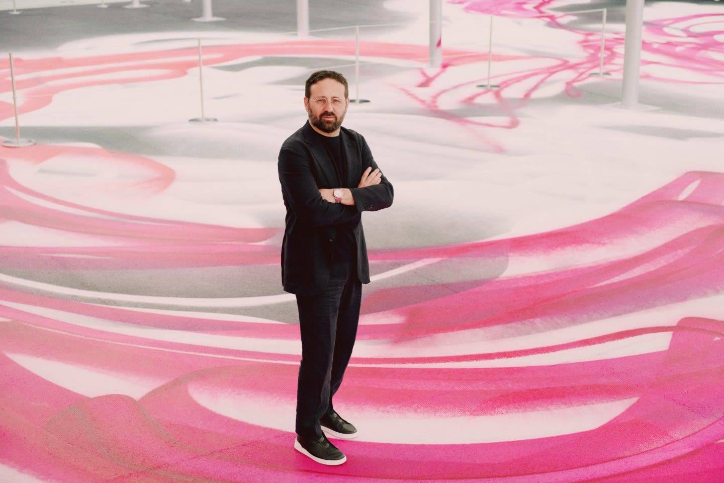 فينتشنزو دي بيلّيس ومدير المعارض العالمية في «آرت بازل» (آرت بازل قطر)