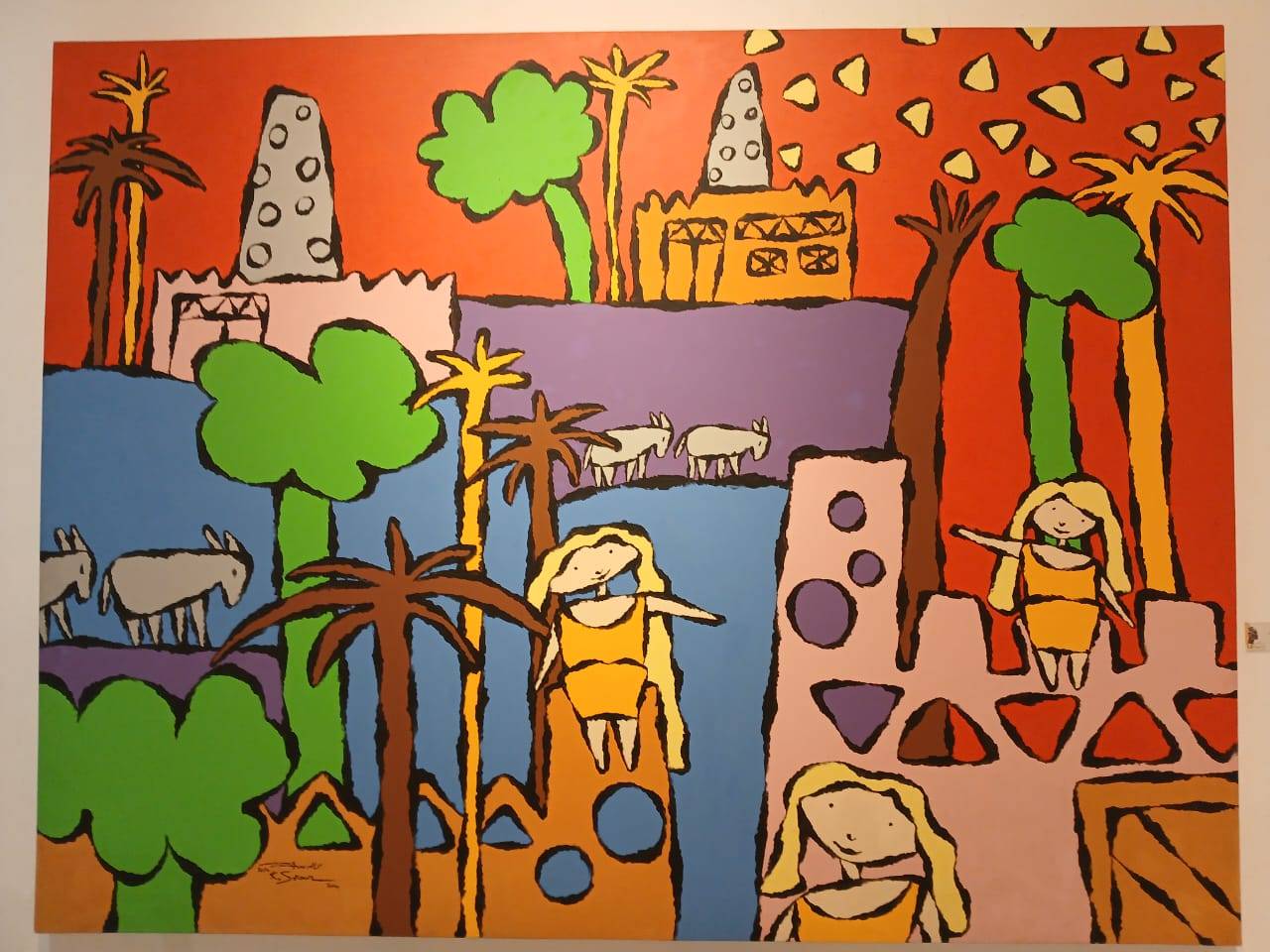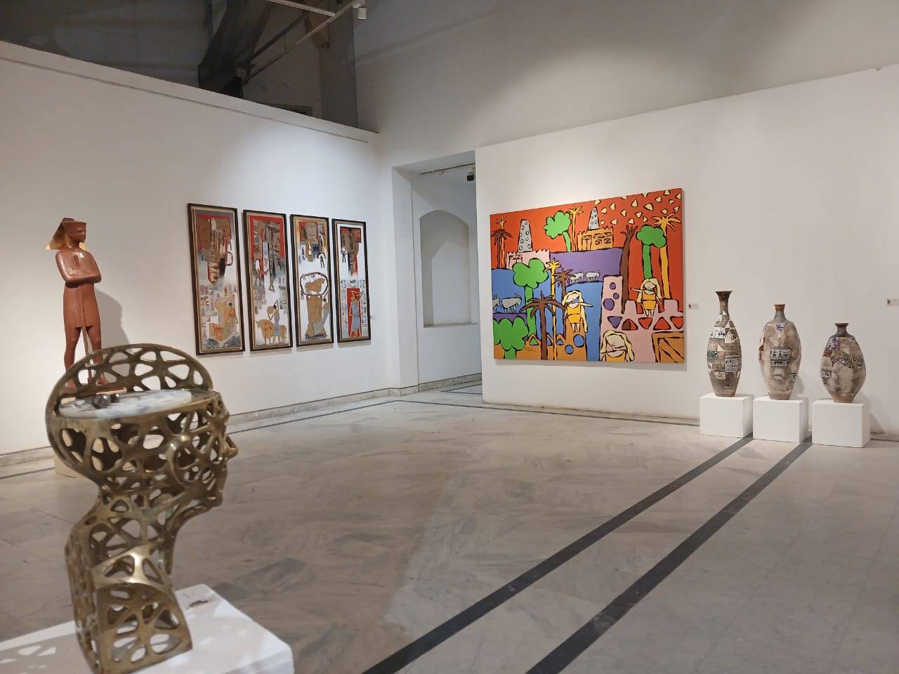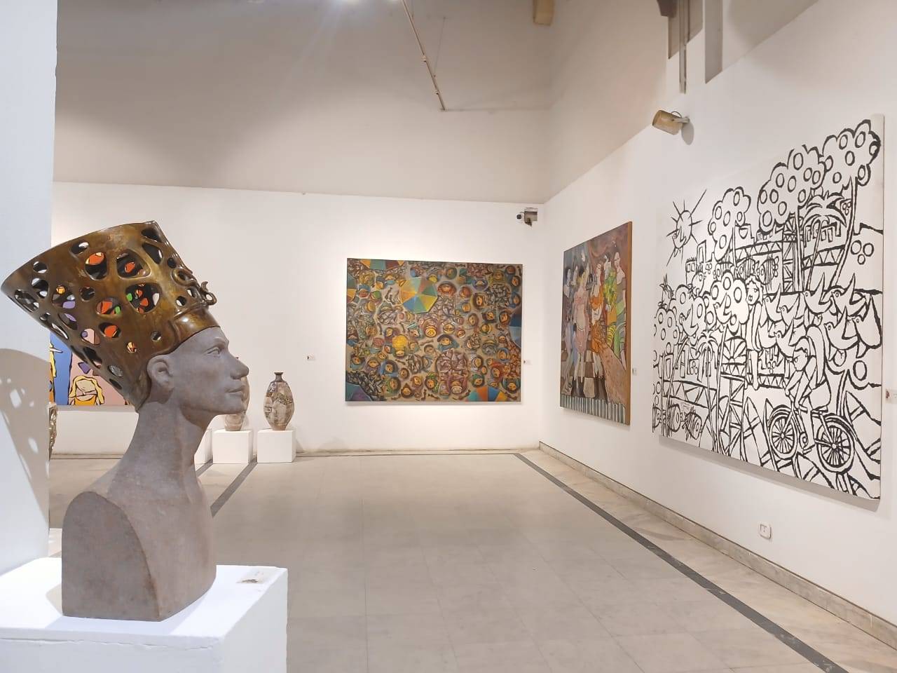 وتتوزَّع الوجوه على نحو واسع داخل أروقة المعرض، سواء في منحوتات البرونز للفنان ناثان دوس، أو في أعمال الفنان خالد سرور التي تستعيد طفولة مرحة بين الأبيض والأسود والألوان الصاخبة، أو في منحوتة الفنانة نيفين فرغلي التي تُعيد صياغة براءة الطفولة بخامة الحديد الملوَّن.