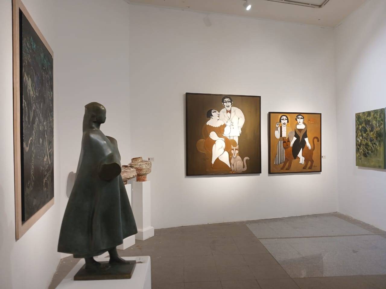 في مدخل «قصر الفنون» بدار الأوبرا المصرية، يستقبل الزوّار تمثال برونزي لافت لامرأة سمراء بدينة. يبدو المشهد أقرب إلى مفتاح بصري يُهيّئ المتلقّي لدخول عوالم متعدّدة من التجارب التشكيلية، حيث ينعقد «صالون القاهرة» في دورته الـ61، تحت رعاية قطاع الفنون التشكيلية في مصر و«جمعية محبّي الفنون الجميلة»، مُحتضناً طيفاً واسعاً من الأعمال بخامات متنوّعة.