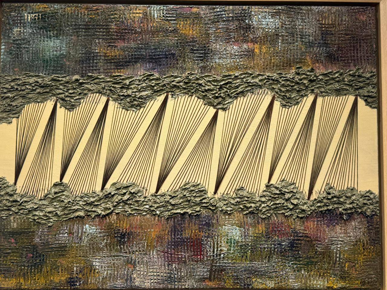 كلّ لوحة تبدو كأنها ولادةٌ من تمزُّق؛ كيانٌ مشدود بين التفكُّك والوحدة، بين الفردي والجماعي، والذاكرة المُبعثرة والرغبة في بناء معنى جديد. شروف يُحوِّل مادته الفنّية (الخيوط والقصاصات) إلى استعارة عن محاولاتنا نحن البشر ربط ما انقطع، وترميم فجوات تركتها الحروب والهجرة والاقتلاع.