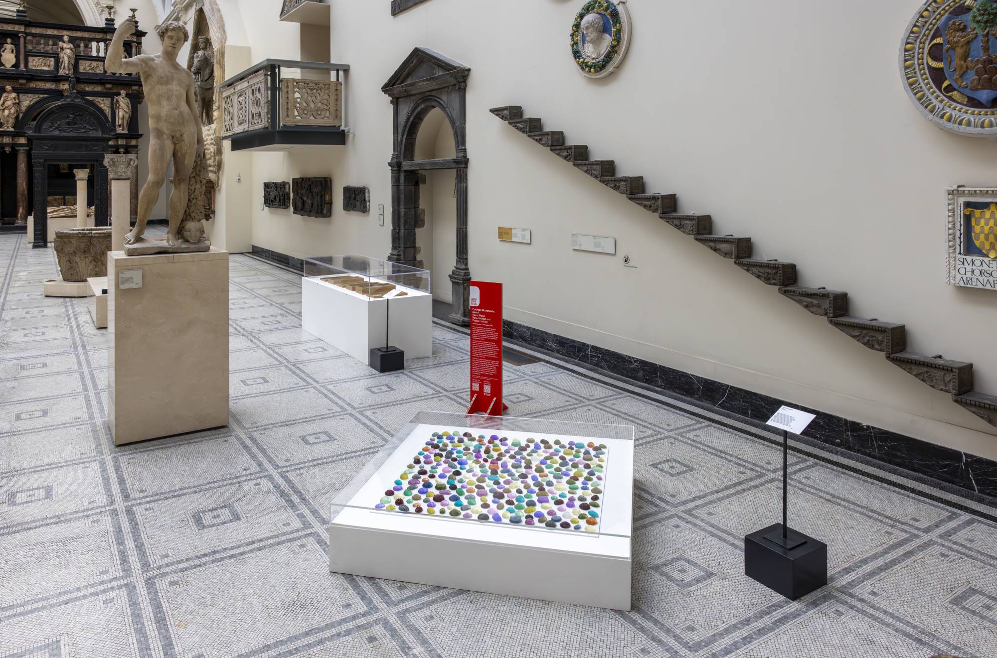في متحف فيكتوريا آند ألبرت، وفي قاعة مخصصة لعصر النهضة والعصور الوسطى تطغى عليها المنحوتات الضخمة تقبع مفاجأة. فعلى جانب من القاعة توجد بعض خزانات العرض التي تضم قطعاً لا تنتمي إلى عصور أوروبا القديمة، بل هي آتية من وقتنا الحاضر ومن عالمنا العربي، وهي ضمن معروضات أسبوع لندن للتصميم الجاري حالياً.