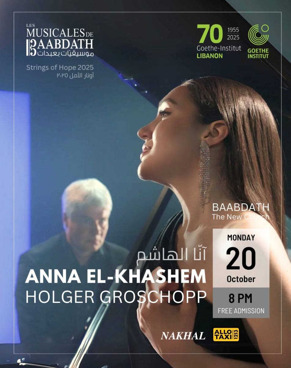 في 20 أكتوبر، تحيي السوبرانو آنا الهاشم حفلاً غنائياً يرافقها خلاله عازف البيانو الألماني هولغر غروشوب. ويُشكّل هذا الحفل الأول من نوعه في بلدها الأم لبنان، فآنا روسية ألمانية لبنانية الأصل، وتُعد من أشهر مغنّيات الأوبرا في أوروبا. ويتضمَّن حفلها مقطوعة موسيقية لعازف البيانو اللبناني هتاف خوري، كما تحضّر معزوفات أوبرالية لموزار، ورخمانينوف، وروسيني.