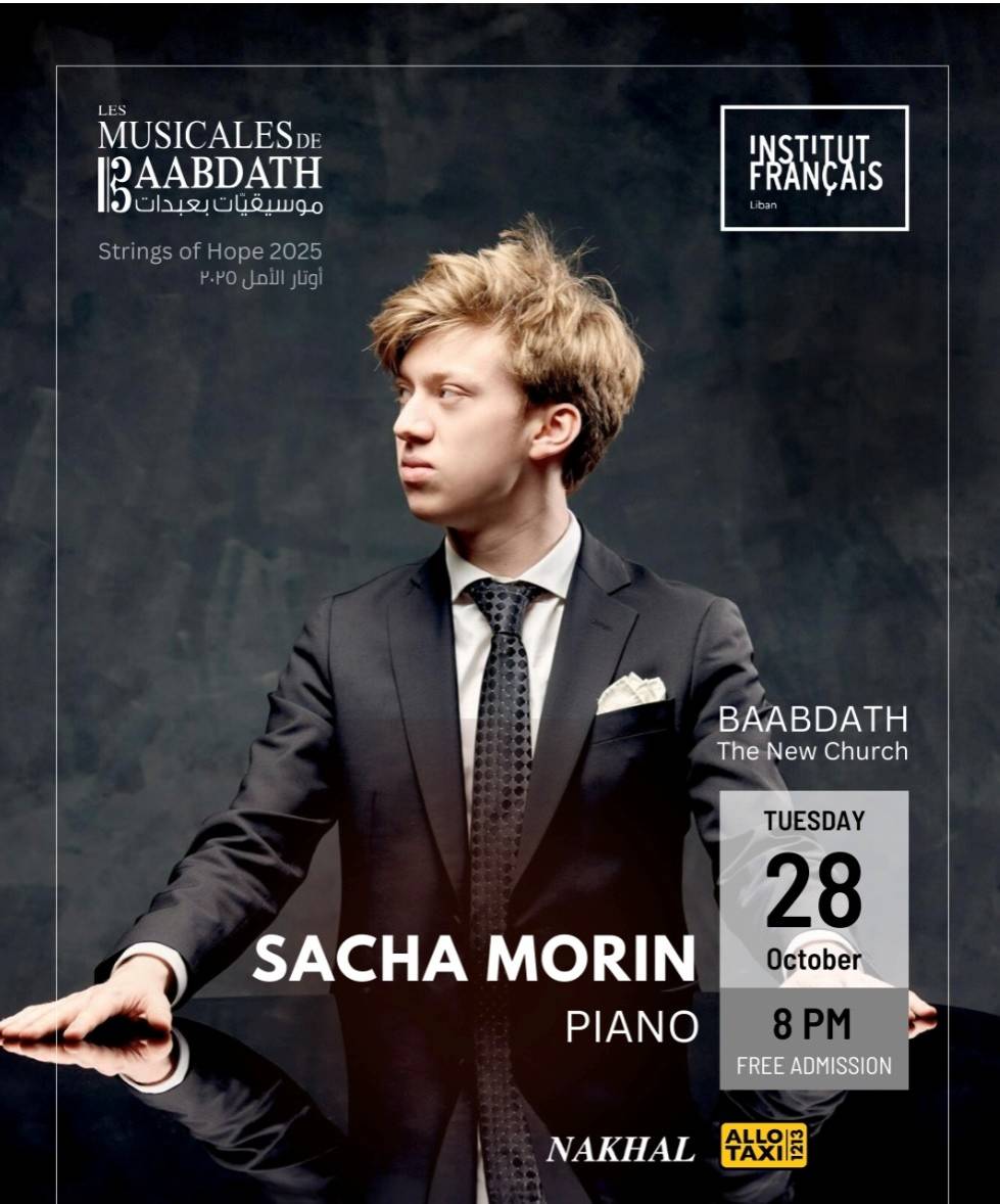 وفي 28 أكتوبر، يقدّم عازف البيانو الفرنسي ساشا مورين حفلاً موسيقياً يوصف بأنه من أبرز المواهب الشابة في فرنسا. وخلال الأمسية، يعبُر الحضور معه في حقبات موسيقية مختلفة تشمل باخ وموزار وشومان وشوبرت، فيستعيد الحاضرون شريطاً طويلاً من موسيقى «الباروك» والكلاسيكية والرومانسية، بما يبرز تطوّر الموسيقى من القرن السادس عشر حتى الثامن عشر.
