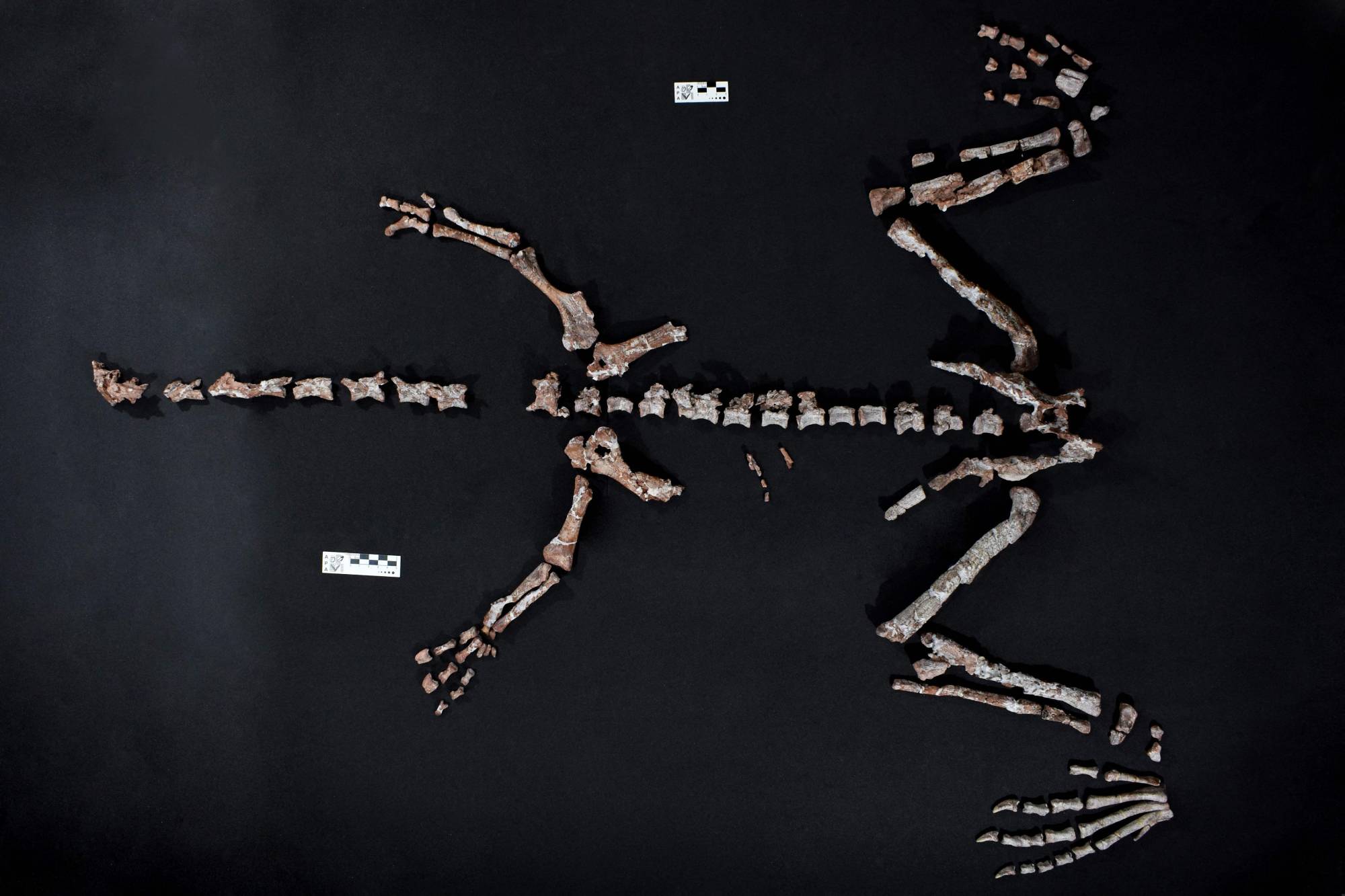 هيكل عظمي شبه كامل لأحد أقدم أنواع الديناصورات في العالم (وكالة كونيسيت - أ.ف.ب)