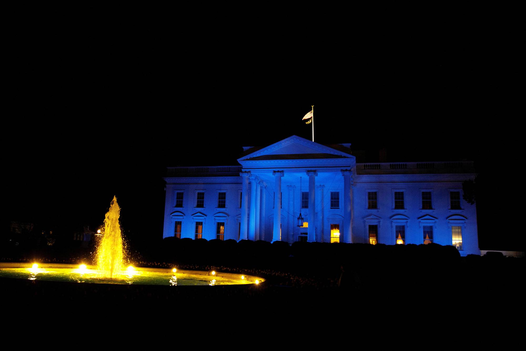 جزء من البيت الأبيض مضاء باللون الأزرق بمناسبة اليوم العالمي للتوعية بمرض التوحد في واشنطن (رويترز)