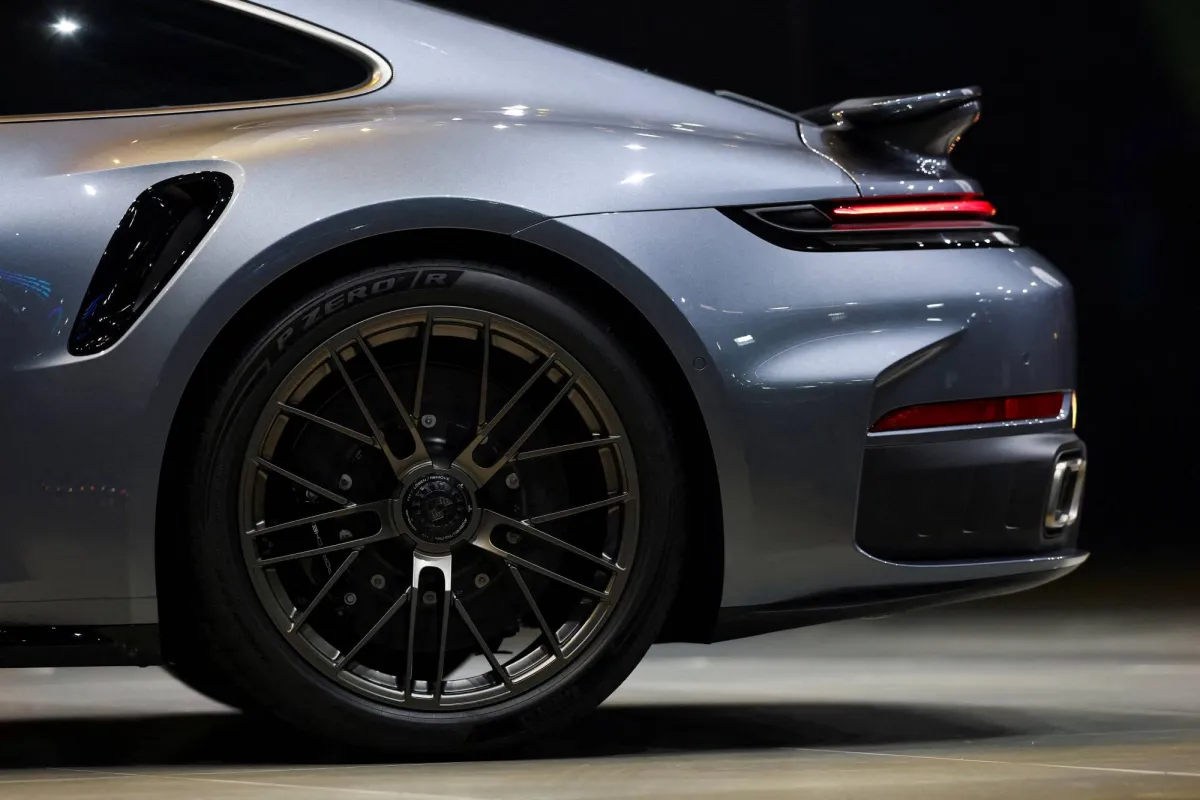 سيارة من طراز «بورشه 911 توربو إس» تُعرض خلال معاينة إعلامية في ميونيخ بألمانيا (رويترز)