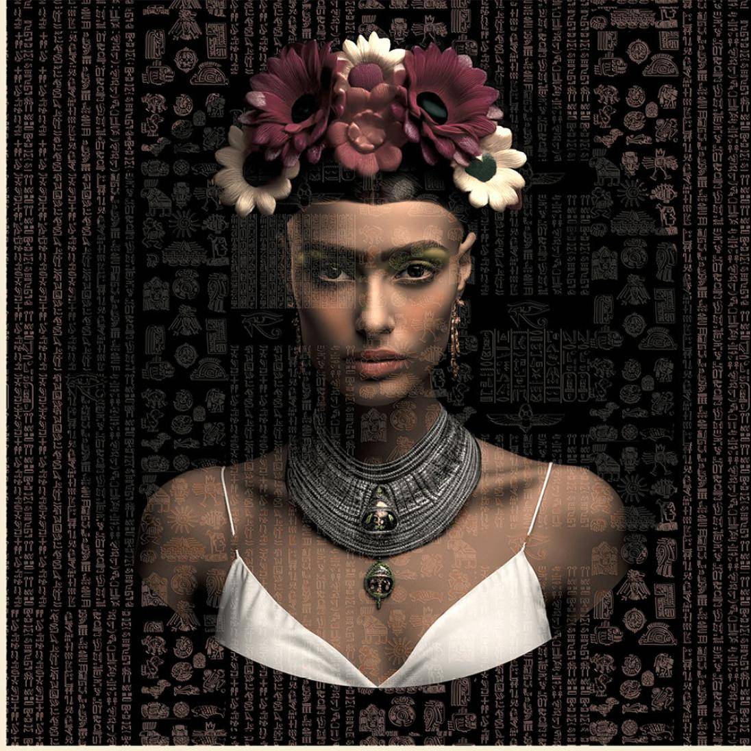 بعض الأعمال المعروضة تستدعي الحالة المصرية القديمة عبر الوجوه والأزياء وعدد من التفاصيل الأخرى المرتبطة بالأساطير القديمة، فيُحاكي عمل الفنان أحمد رجب صقر رمزية الفنّ الفرعوني في دائرة تشبه قرص الشمس تُجسّر المسافة بين النظام المقدّس للماضي ونبض الحاضر، بينما يقدّم الفنان أيمن لطفي مقاربة تصويرية بين نفرتيتي وفريدا كاهلو بطريقة تضع العمل في إطار أسطوري مُستلهماً بوابة الشمس في الإطار الدائري داخل العملين.