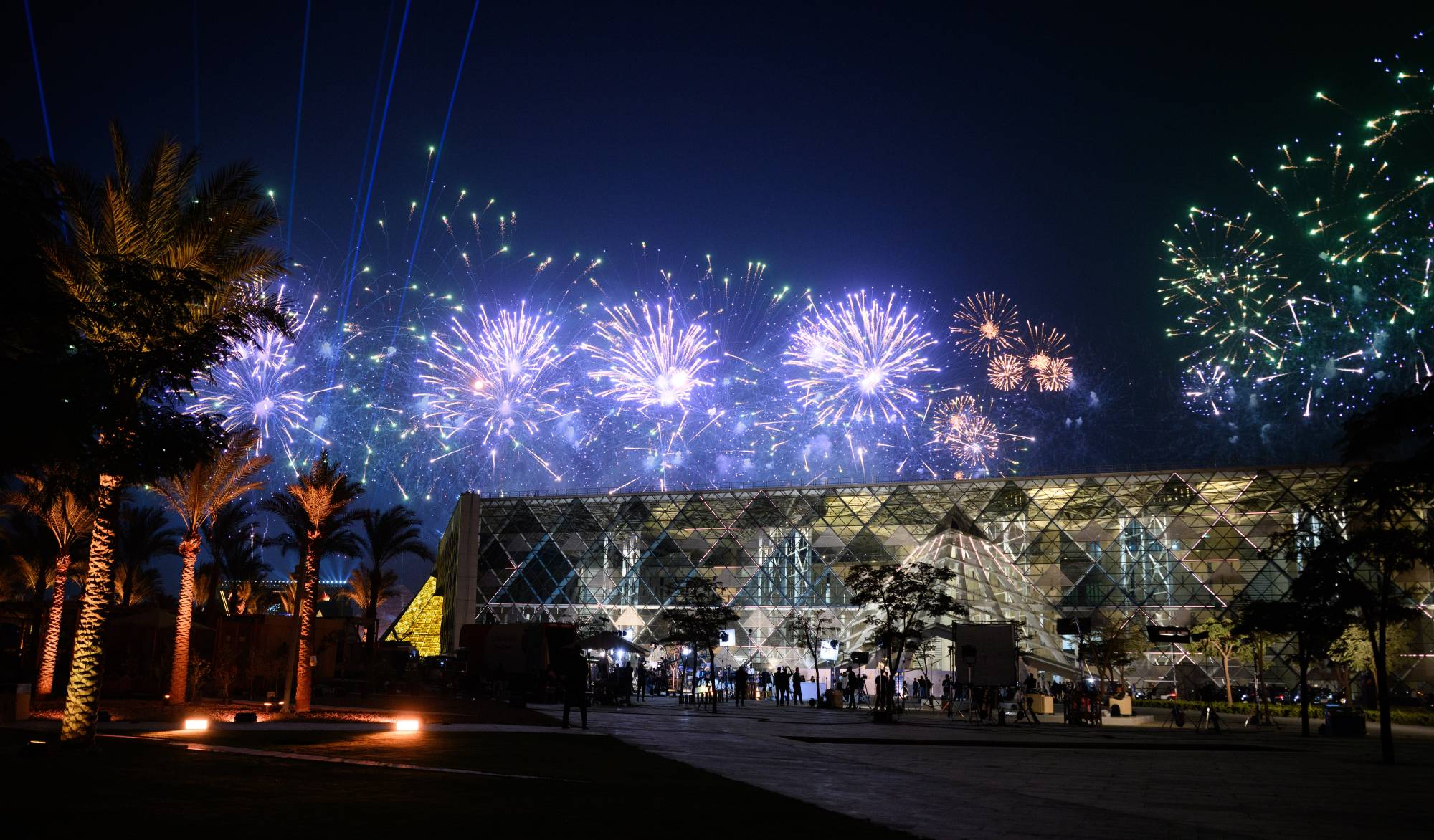 وركز حفل افتتاح المتحف على إرسال رسالة «سلام»؛ إذ بدأ بعرضٍ فني بعنوان «العالم يعزف لحناً واحداً»، تبعه عرض «الليزر والدرونز»، الذي شرح نظرية «حزام أوريون» وعلاقة بناء المتحف بالأهرامات، ومن ثَمَّ عرض فني بعنوان «رحلة سلام في أرض السلام» تخلله مشهد فني عن إبداع المصريين في البناء بداية من بناء هرم زوسر حتى البناء في العصر الحديث، ليستمع الحضور لأغنية قبطية، وإنشاد صوفي، وتخللت الفقرات أغنية قبطية وإنشاد صوفي، ثم عرض آخر بالدرونز يظهر عبارة «الحضارات تزدهر وقت السلام».