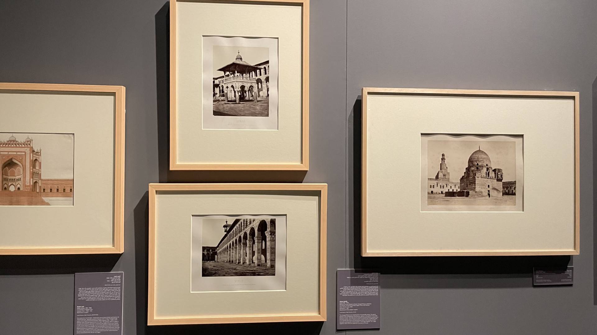 نعرف من خلال القطع المعروضة بعض التصاميم التي تنافست لتنفيذ متحف الفن الإسلامي، ومن بينها تصميم لمكتب زها حديد. تقول زهرة خان المشرفة على العرض، إن باي قرر زيارة عدد من البلدان لرؤية معالم إسلامية شهيرة، لينطلق في رحلة بحث وتعارف مع نماذج من العمارة الإسلامية. نرى صوراً لعدد من المباني التي زارها واهتم برؤيتها، ولكن زيارته للقاهرة كانت هي الشرارة التي أشعلت مصباح الإلهام، فقد وجد آي إم باي في مسجد ابن طولون العناصر المعمارية التي يمكن أن يستوحيها ويطور منها بناء يلائم الدوحة.