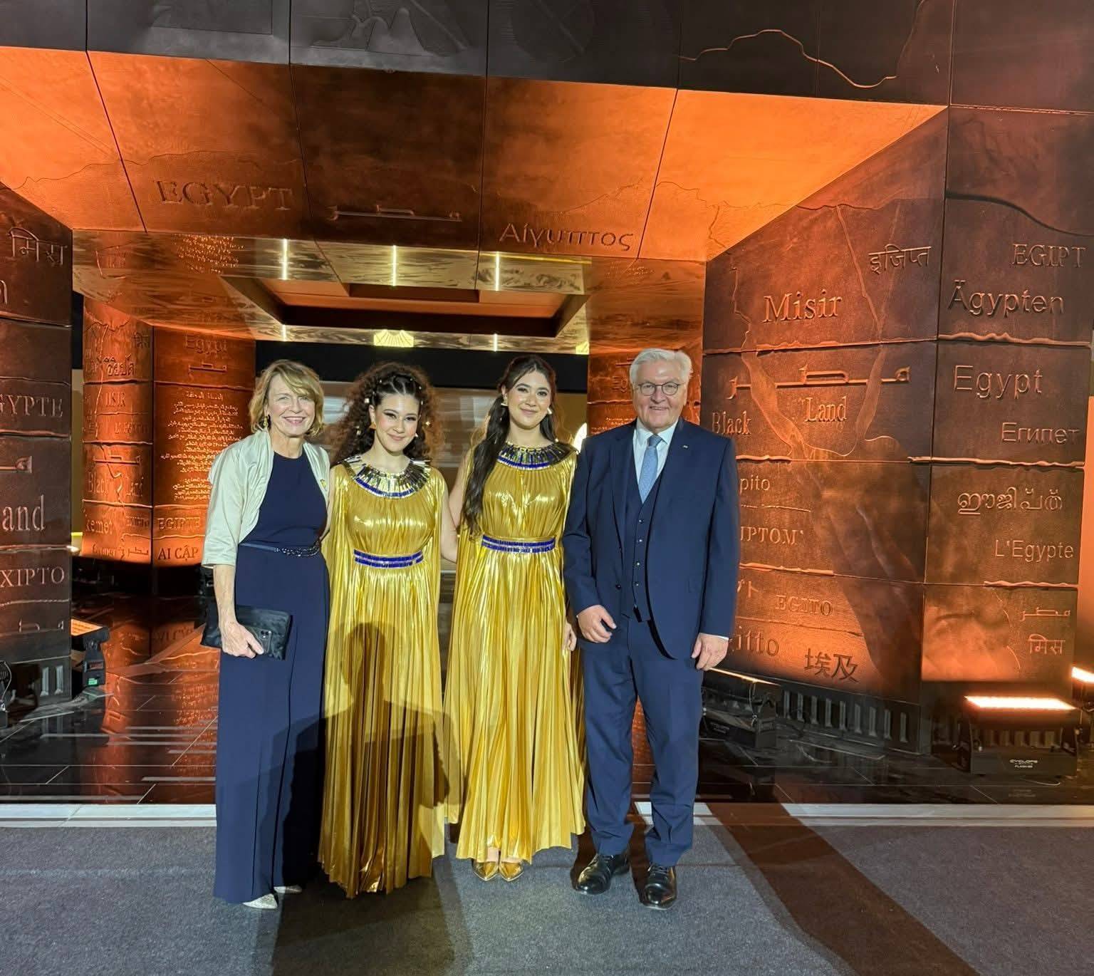 وكان الرئيس الألماني فرانك فالتر شتاينماير قد تحدث إلى أميرة ومريم، ووجه لهما التحية عقب حفل افتتاح المتحف الكبير، وقد سألهما عن دراستهما وكيف وصلتا لهذا المستوى في العزف، وقال إنهما تمثلان حلقة وصل بين مصر وألمانيا.