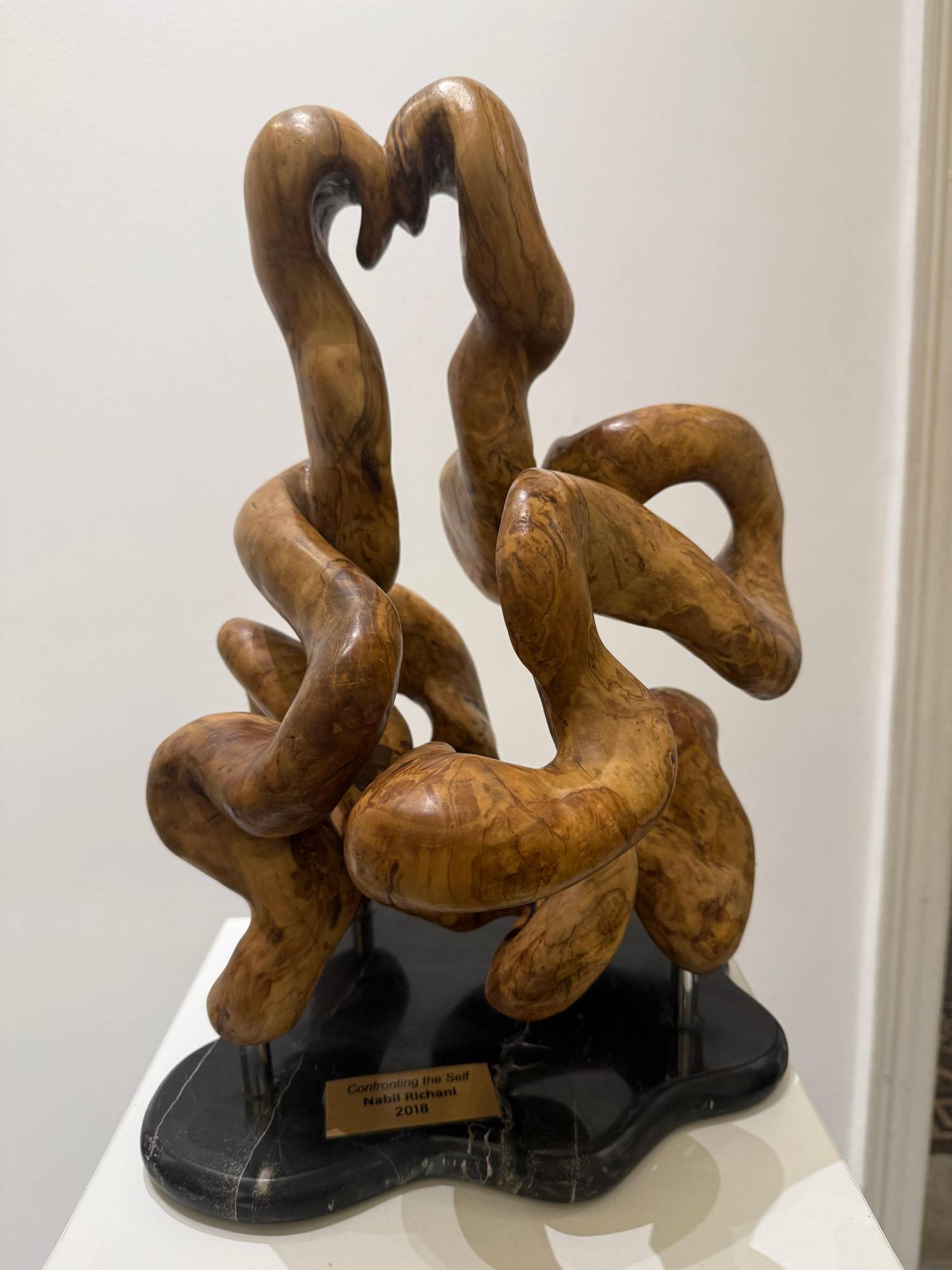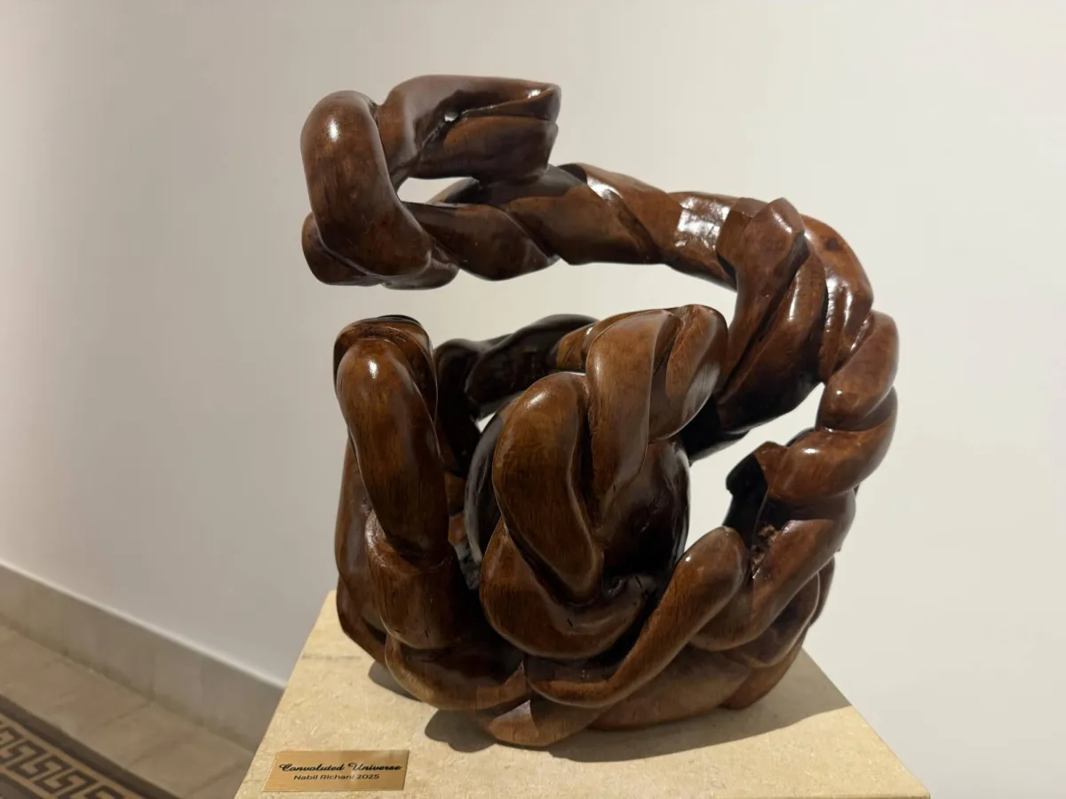 ثمة عمل يلتفُّ مثل عقدة جميلة، كأنه يُلمِح إلى أنّ الأمتعة النفسية الثقيلة لا تُرمَى دفعة واحدة. منحوتات ريشاني تُقدّم اقتراحاً آخر هو التخفُّف عبر التنعيم. الحواف التي كانت مُدبَّبة تُصقَل حتى تغدو قابلة للمسّ، والعقدة تتَّسع ليمرّ الهواء من خلالها. حين يصبح الفراغ جزءاً من التكوين، تتنفَّس الكتلة. وحين تُفتح نافذة صغيرة، يتبدَّل المزاج كلّه.