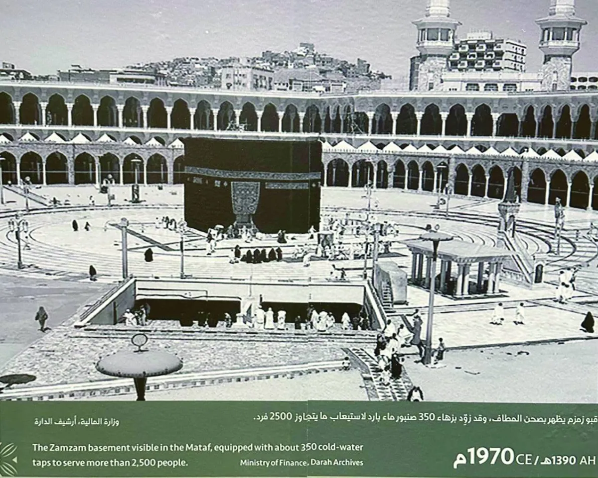 قبو زمزم يظهر في صحن المطاف عام 1970 (دارة الملك عبد العزيز)