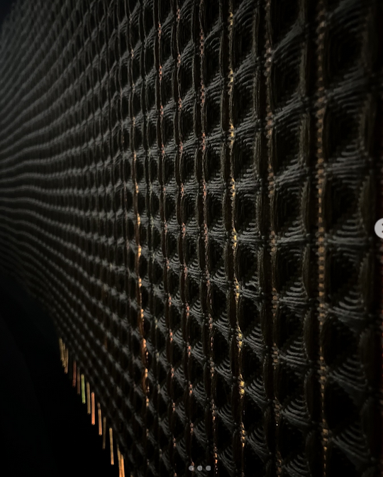 عبّرت الفنانة أسماء الجهني في عملها «أصوات منسوجة» عن مفهوم «المجلس» في الثقافة السعودية؛ كونه الحيز الذي يستحوذ على أهم مساحة وأكبر عناية في المنزل كمصدر للتباهي. ومن ناحية أخرى يعكس العمل كيف أصبحت هذه المجالس مساحات شبه مهجورة في البيوت، نتيجة المتغيرات التي طرأت على المجتمع السعودي. يتكون «أصوات منسوجة» من ست قطع كل منها يمثل نوعاً من المجالس، مثل مجلس النساء ومجلس العائلة ومجلس الرجال ومجلس البادية، بالإضافة إلى منسوجتين تفاعليتين. كل مجلس أو منسوجة تتضمن أصواتاً خاصة، سُجلت من مجالس حقيقية. أما المنسوجتان الإضافيتان فتتفاعلان مع أصوات الزائرين مظهرتين إضاءات متنوعة بحسب تردد الصوت، في رمزية للمساحات الصامتة التي تُخلق فيها الحياة من جديد بوجود الزوار وتفاعل الأفراد فيما بينهم. وعن الأسئلة التي يطرحها العمل تجيب: «تساءلت عن الذاكرة التي نحتفظ بها من حوارات المجالس، وشعور الانتماء الذي يتشكل داخلنا ضمن هذه المساحات. ومن خلال البحث الذي أجريته عن الأصوات والمجالس توصلت إلى أن الذاكرة متغيرة وفقاً لتغيراتنا نحن؛ بمعنى أن أصوات المجالس ليست وثيقة ثابتة، ولكن فكرة تختلف من شخص لآخر وقابلة للتطور مع الوقت».