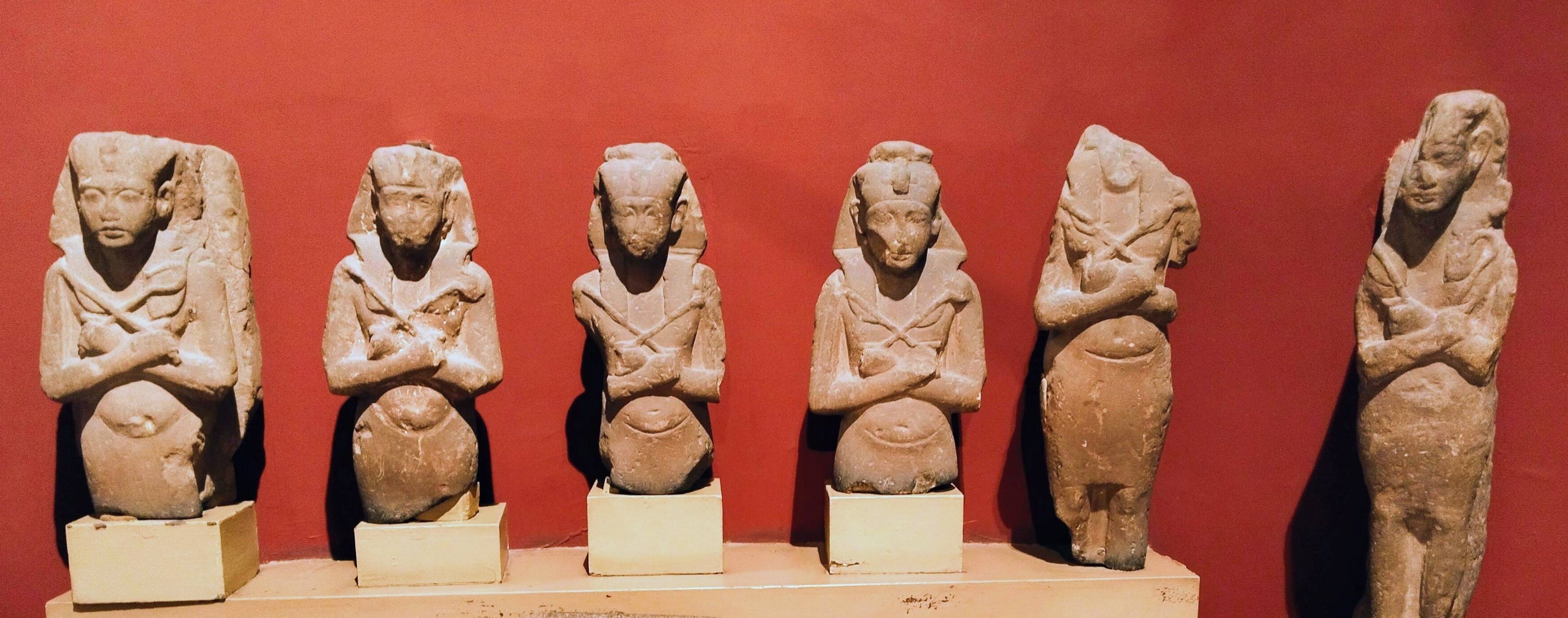 وحسب منشور للمتحف «كانت هذه التماثيل تقف أمام تماثيل أبي الهول برؤوس الكباش، التي كانت تصطف على جانبي الطريق الممتد من الصرح العاشر في معبد الكرنك بالأقصر، إلى حرم معبد (موت) المجاور، وكان الهدف من إقامة هذه التماثيل للملك هو التعبير عن احترامه للإله أوزوريس وطلب حمايته».