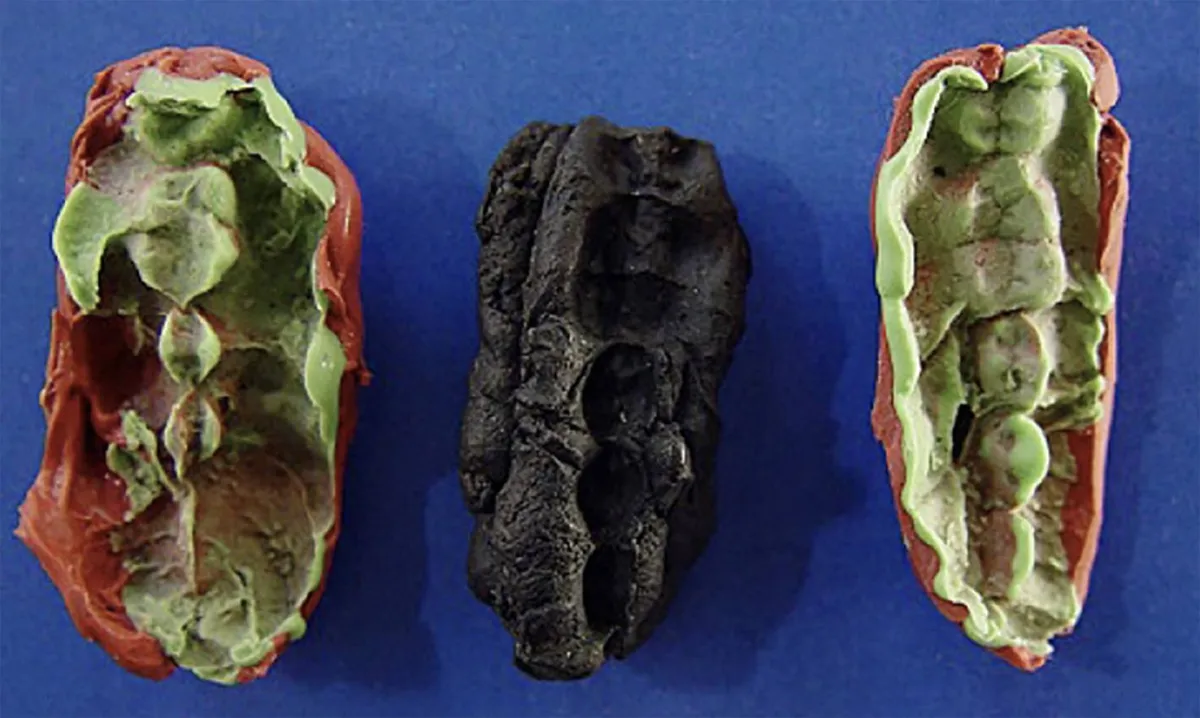 واكتشف «معهد التاريخ والآثار» في جامعة «تارتو» أن تلك العلكة المصنوعة من قطران شجر البتولا قد احتفظت بآثار واضحة لطبعات الأسنان وبقايا من اللعاب. ويُستخلص هذا القطران من التقطير الجاف للحاء شجرة البتولا، ويُعرف أيضاً باستخداماته كلاصق طبيعي منذ آلاف السنين.