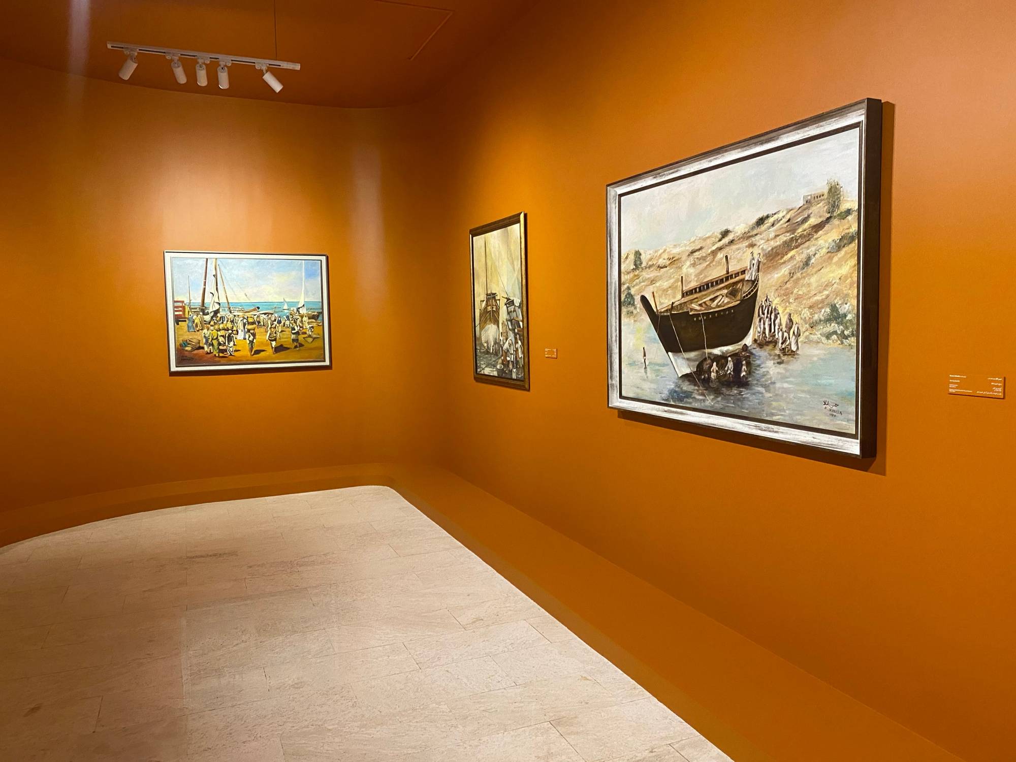 ويقدم المعرض أعمالاً لنخبة من فناني الخليج، من أبرزها أعمال لعثمان الخزيم، وعيسى صقر، ومحمد السليم، ومحمد كاظم، وراشد آل خليفة، وعبد الله الشيخ، وجاسم بوحمد، وسواهم من فنانين قدموا من خلال أعمالهم لمحات من الذاكرة الثقافية لمنطقة الخليج العربي، في ظل موجات التحديث السريعة، مستكشفاً رموزاً مشتركة مثل التجارة البحرية والغوص لاستخراج اللؤلؤ والهجرة، وأعمالاً تجسّد فترات من الحزن والقدرة على الصمود في أوقات النزاع، إلى جانب تجارب جريئة في التجريد والمادية، حيث تجاوز الفنانون حدود التمثيل لصياغة قواميس جمالية جديدة، تعكس التنوع الثقافي في المنطقة وحيوية التبادل الفني فيها.