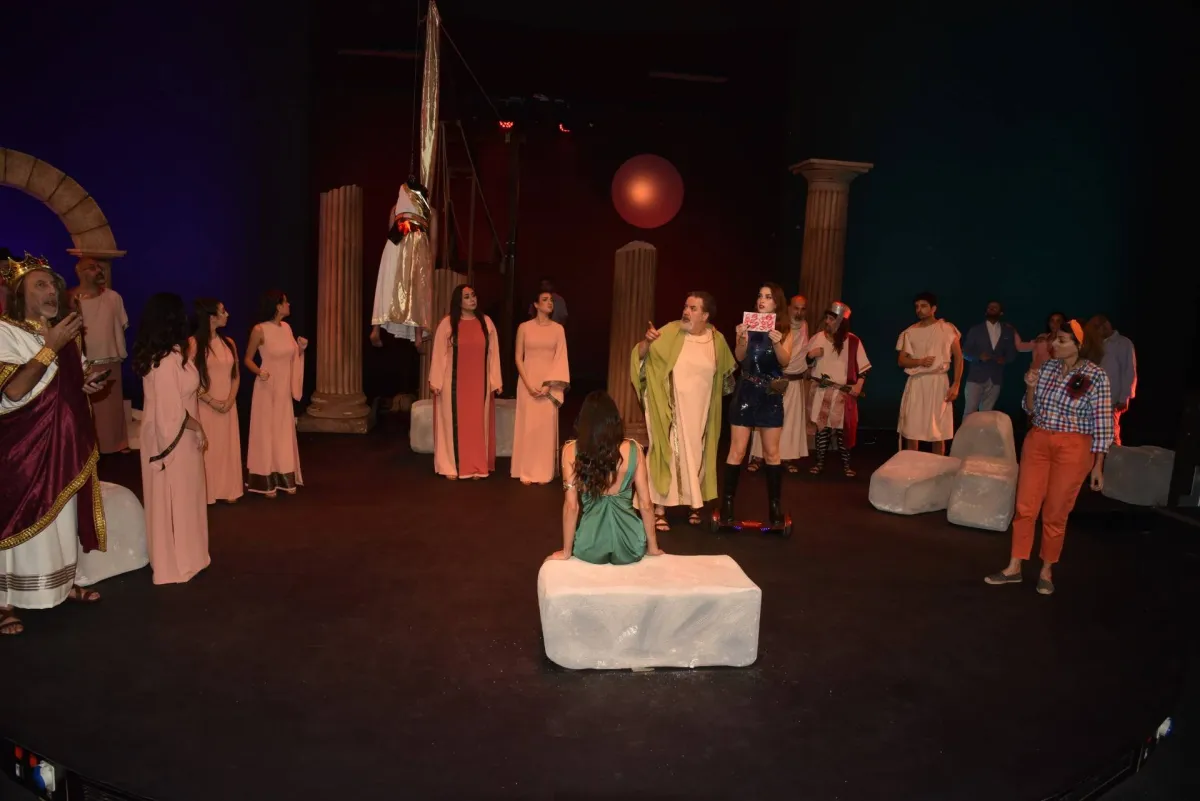 لبننت خوري العمل ليتلاءم مع المجتمع المحلي. حافظت على خطوطه الرئيسية. ولكنها حقنته بجرعات اجتماعية وسياسية بأسلوب خلّاق. يدور موضوعها حول كاتب وممثل يحاولان إيجاد خاتمة لمسرحيتهما. أما أحداثها فتجري في أيام الإغريق، وتقدم على مسرح تطبعه تلك الحقبة. وتأتي خشبة «غلبنكيان» لتترجم هذه الأجواء من خلال هندسته المعمارية المستوحاة من مسارح أثينا القديمة.