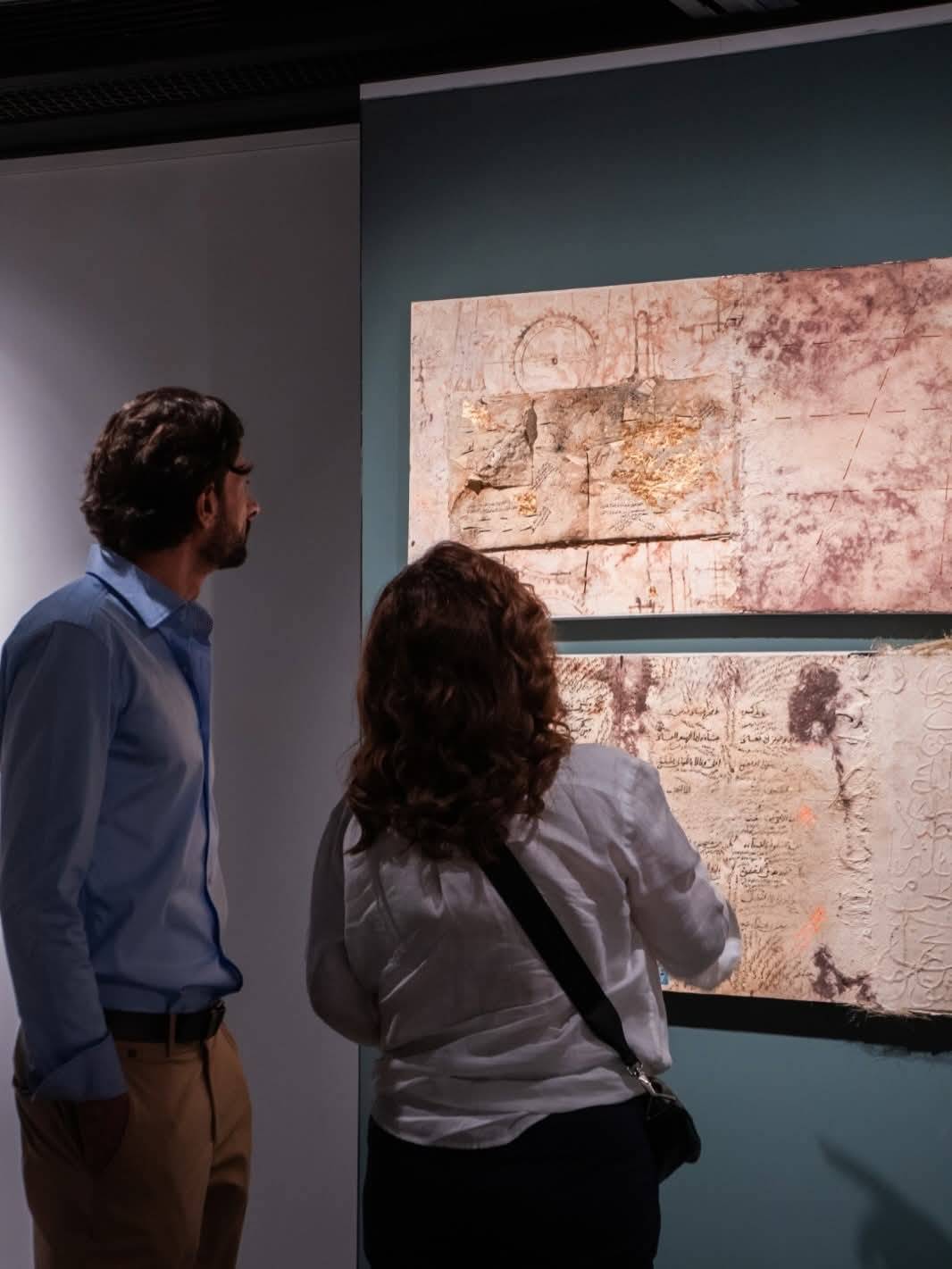 وترى رندا أن «هذه الأعمال تستحضر طريقة الفنان في تسجيل الذكريات، والاحتفاء بها، وتتراكم في طبقات متتابعة تبرز الخصائص اللمسية للخشب، ولبّ الورق، ما يعمّق الإحساس بالزمن، ويضفي على الأعمال طابعاً ضارباً في القدم، والرسوخ».