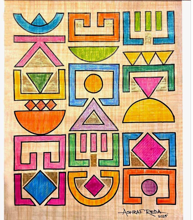 وشارك رضا بلوحة «أبجدية التاريخ» على ورق البردي، وقال إن «الجميل في هذا المعرض أن صاحبة المبادرة تنتوي أن تخرج بهذا المعرض إلى خارج مصر، والسفر به لأكثر من دولة أوروبية، لتقدم الفنون المصرية المعاصرة على الخامة المصرية القديمة».