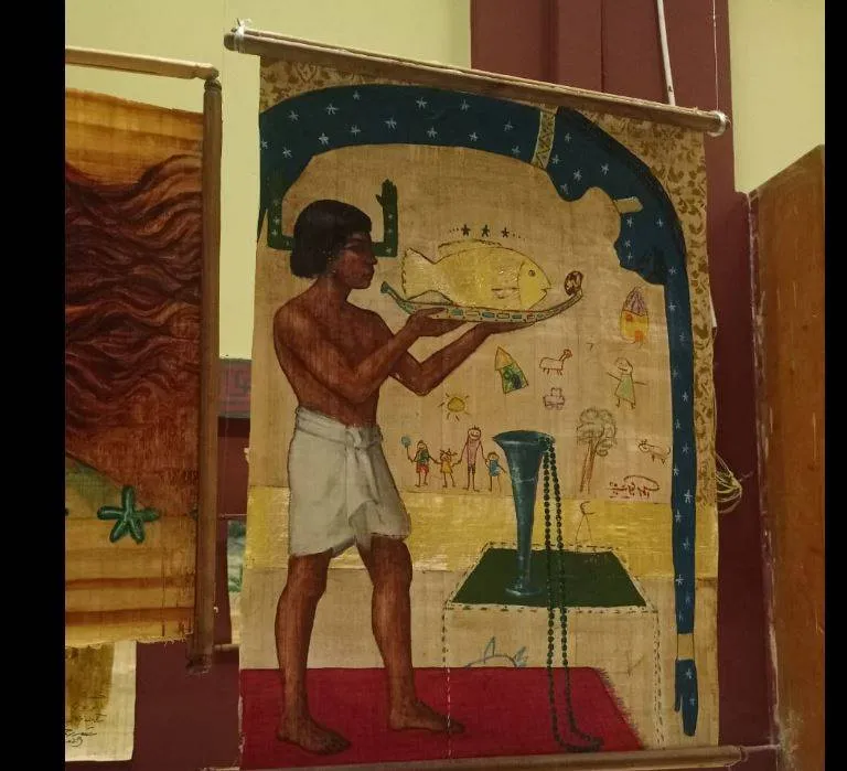 وشارك في المعرض مجموعة كبيرة من الشباب، وفق رضا، مؤكداً أن «كل فنان رسم بالطريقة التي اعتاد أن يرسم بها، سواء بطريقة تعبيرية أو تجريدية أو غيرها من الأساليب والمدارس الفنية، لكن المهم أن يقدم منتجه النهائي على ورق البردي».