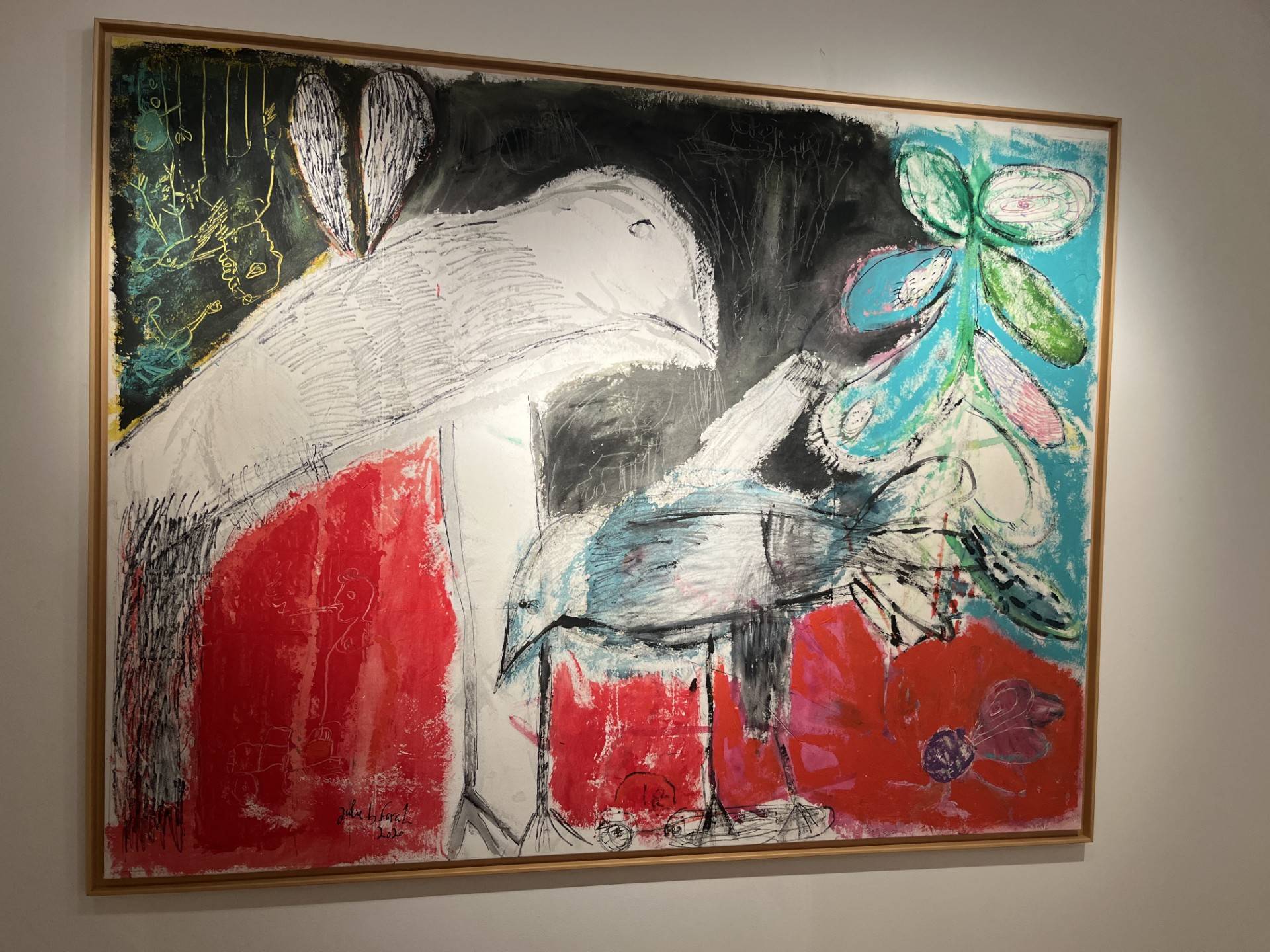 لوحة الطير في معرض «آي كلاود» لجولي بو فرح (الشرق الأوسط)