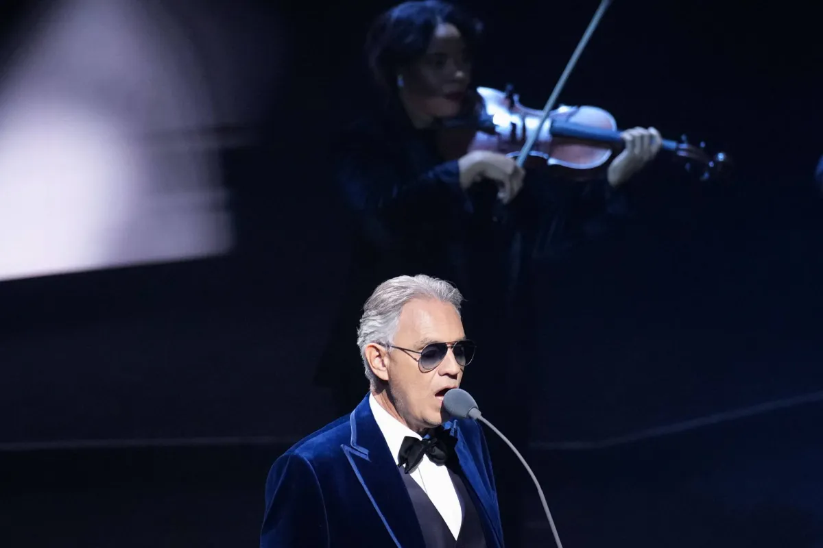 المغني الأوبرالي الإيطالي أندريا بوتشيلي يقدم عرضاً خلال قرعة كأس العالم لكرة القدم 2026 (أ.ف.ب)
