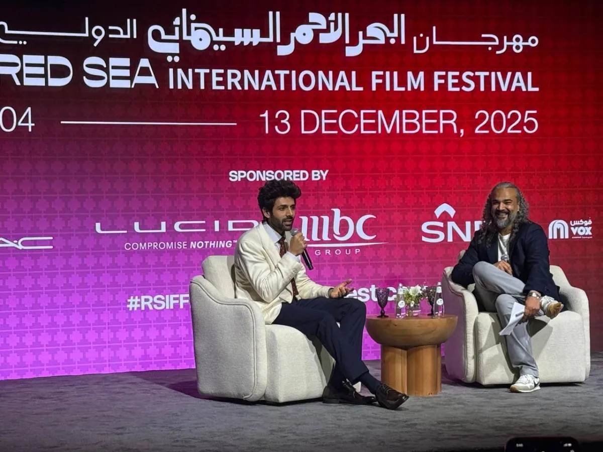 احتشد جمهور «مهرجان البحر الأحمر السينمائي»، في نسخته الخامسة هذا العام، داخل قاعة الندوات، الاثنين، لاستقبال النجم الهندي كارتيك آريان في أول زيارة له إلى جدّة.