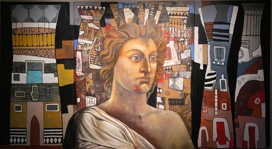 وأشار حسني إلى وجود لوحة للإسكندر بنظرته المتأمّلة وهو شارد في البعيد، تظهر في خلفيتها عناصر معمارية قدَّمها الفنان بشكل حداثي، مُستفيداً من التكعيبية، وقد وُضعت في صدارة المعرض نظراً إلى قيمتها الفنّية الكبيرة.