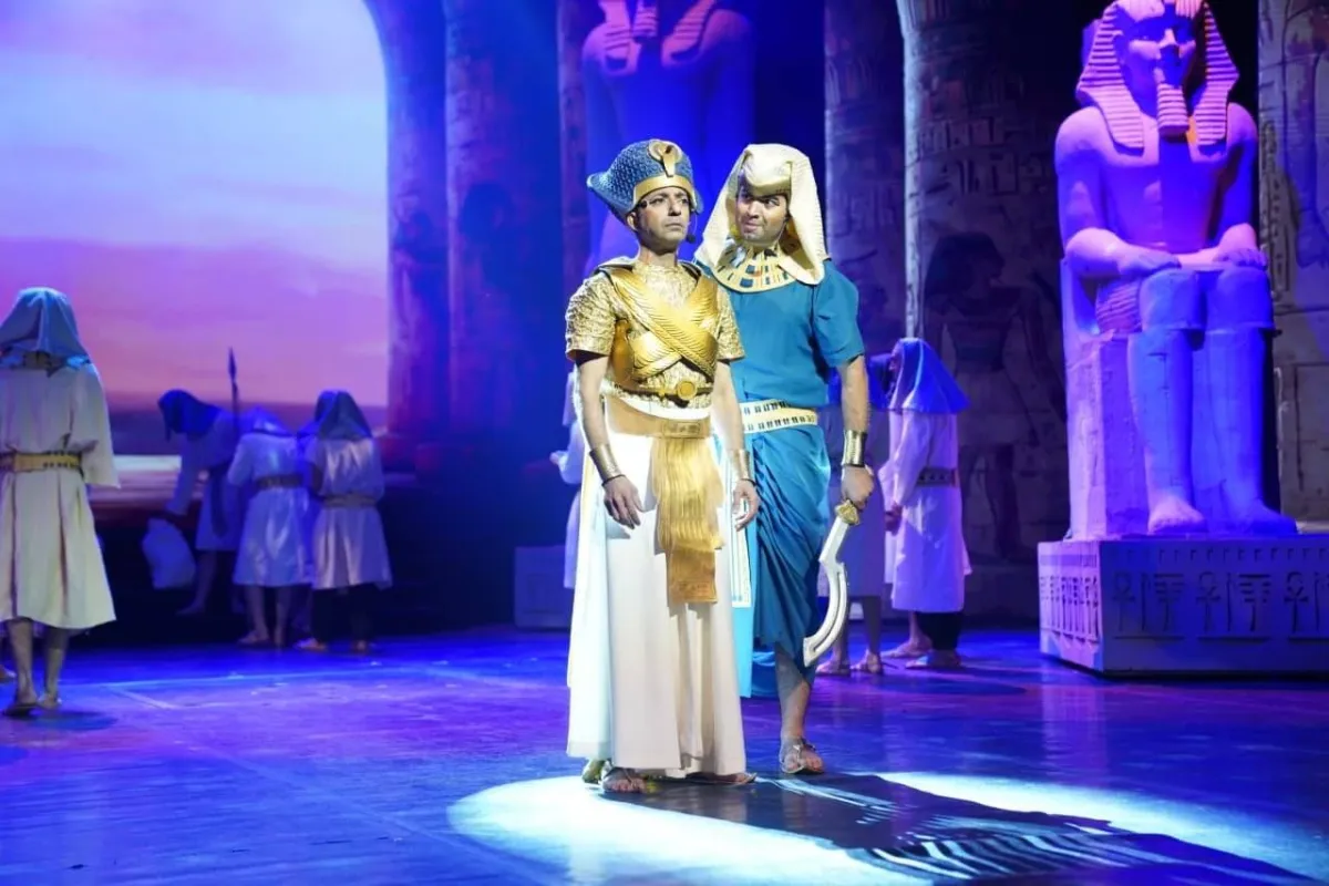 ومن خلال هذا التنوع، تنقّلَ العرض بين العصور الفرعونية والإسلامية والحديثة، مستحضراً شخصيات تاريخية وأسطورية ومتخيلة، في معالجة درامية سعت إلى إبراز الأسئلة الكبرى التي شغلت الكاتب؛ من الحرية والعدل، إلى الصراع بين السلطة والضمير، وعبر فتاة شابة من جيل «زد» تدخل متحفاً يضم عدداً من الشخصيات التي قدّمها.