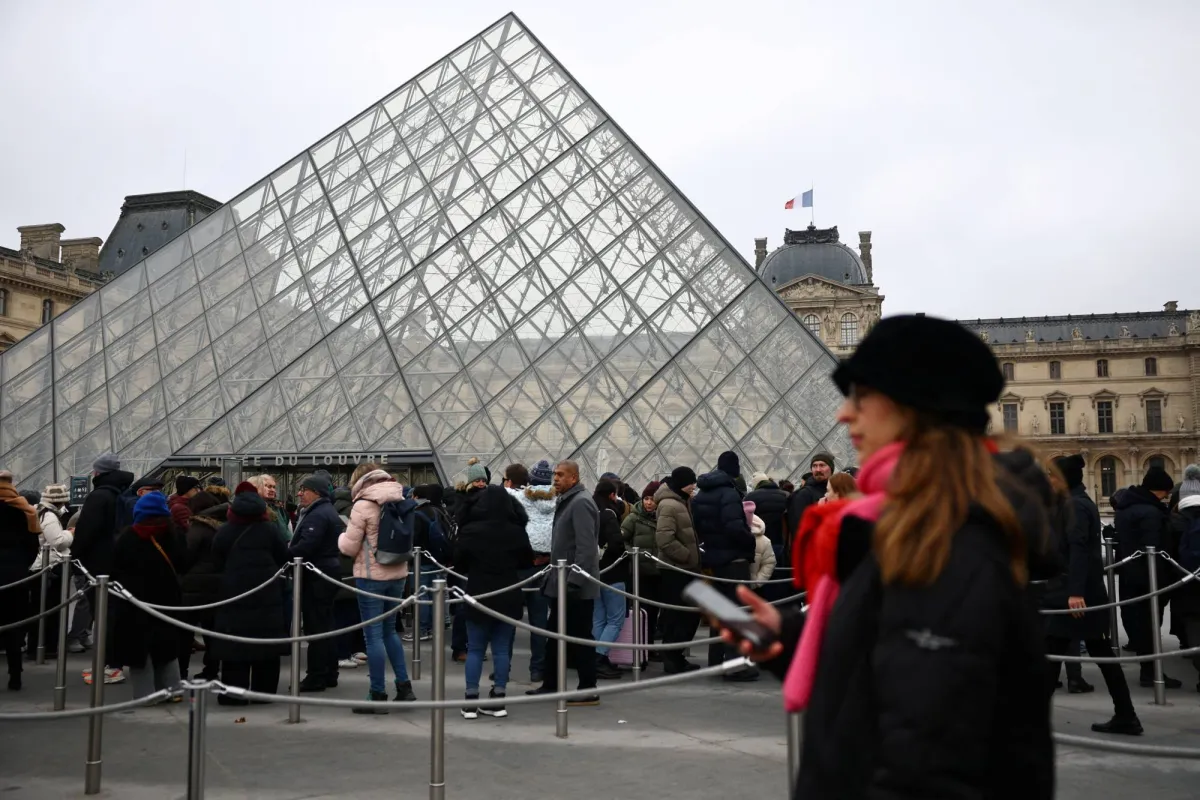 اصطف الناس في طوابير للدخول إلى الهرم الزجاجي للوفر (رويترز)