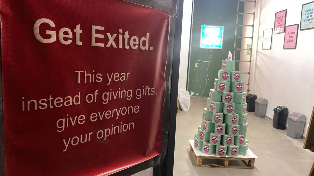 انطلق سماحة من لافتات الخروج وصناديق القمامة والعبارات الجاهزة وأدوات الاستعمال اليومي، وهي مفردات نعرفها جميعاً. لكنه لم يعرضها كما هي. أعاد صياغتها لغوياً وبصرياً، وبدَّل وجهتها لتتحوّل من إشارات وظيفية إلى جُمل وجودية ساخرة ومُربكة. عبارة مثل «Exit to Exist» تجعل الزائر يُفكّر في مدى احتمال أن يخرج الإنسان كي يوجد، أم أنّ وجوده في ذاته هو حالة الخروج الدائم؟