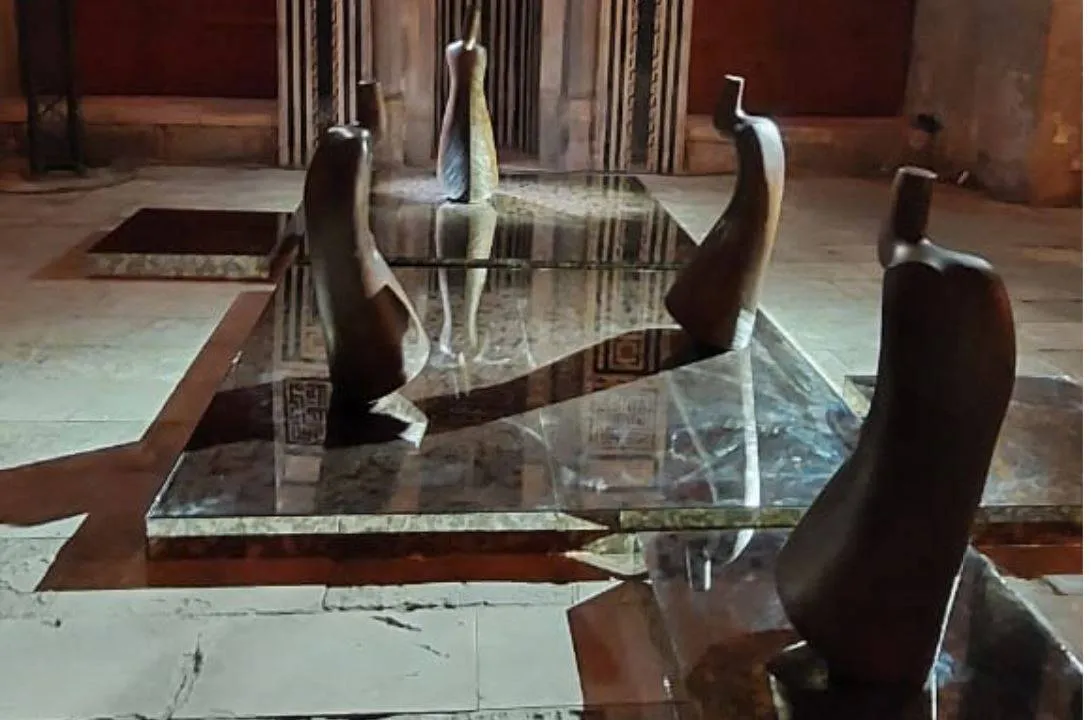 ويقدّم معرض «المسار» مجموعة من المنحوتات البرونزية للفنان خالد زكي، من سلسلتي «الصوفي» و«الرحلة»، حيث تستدعي الأجساد هيئة الدراويش في حالة عبور دائم، متأرجحة بين الأرض والسماء، وبين الثبات والدوران، في صياغة بصرية تسائل الزمن أكثر مما تمثله، وتتقاطع الأعمال بصرياً مع الخطوط الرأسية للعمارة المملوكية لقبة الغوري، لتعيد تفعيل المكان بوصفه عنصراً أساسياً وفاعلاً في التجربة الفنية، وتتيح للزائرين استكشاف التفاصيل والتفاعل مع الفن والتراث معاً.